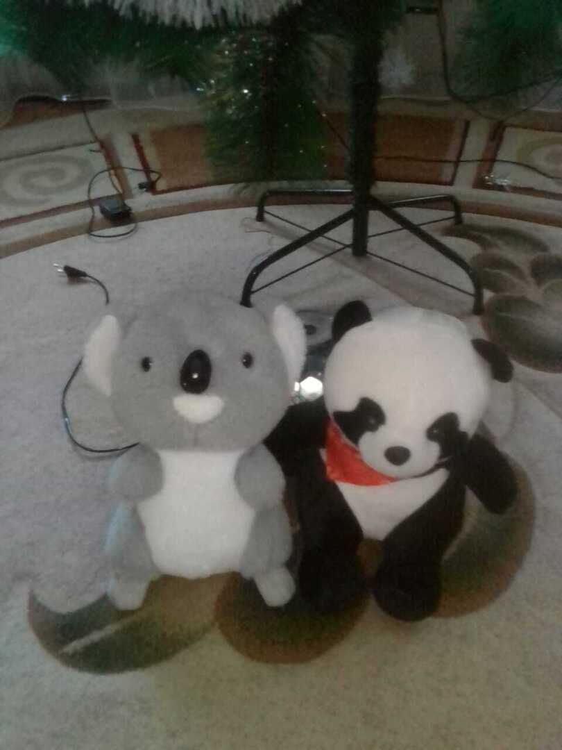 А это два друга. Панда Глазок и коала Клава. Они дружат с самого момента появления в нашем доме.