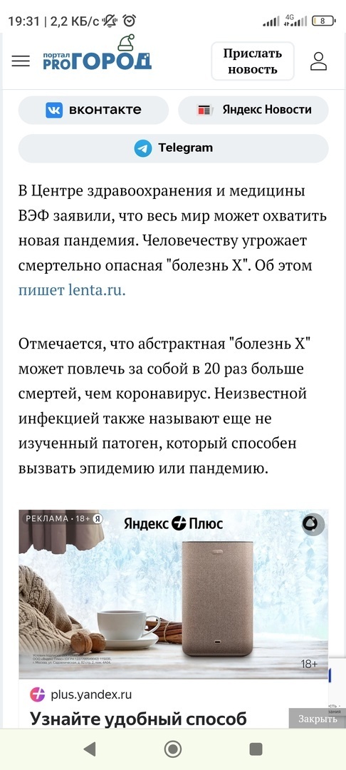 Всем приветики. На выходных листала наш местный паблик по области. И наткнулась на новость: " В России новый вирус. Странные симптомы ОРВИ, преследуют кошмары". Полезла открывать. Пол часа ржали всем чатом. А потом успокаивали паникёров.