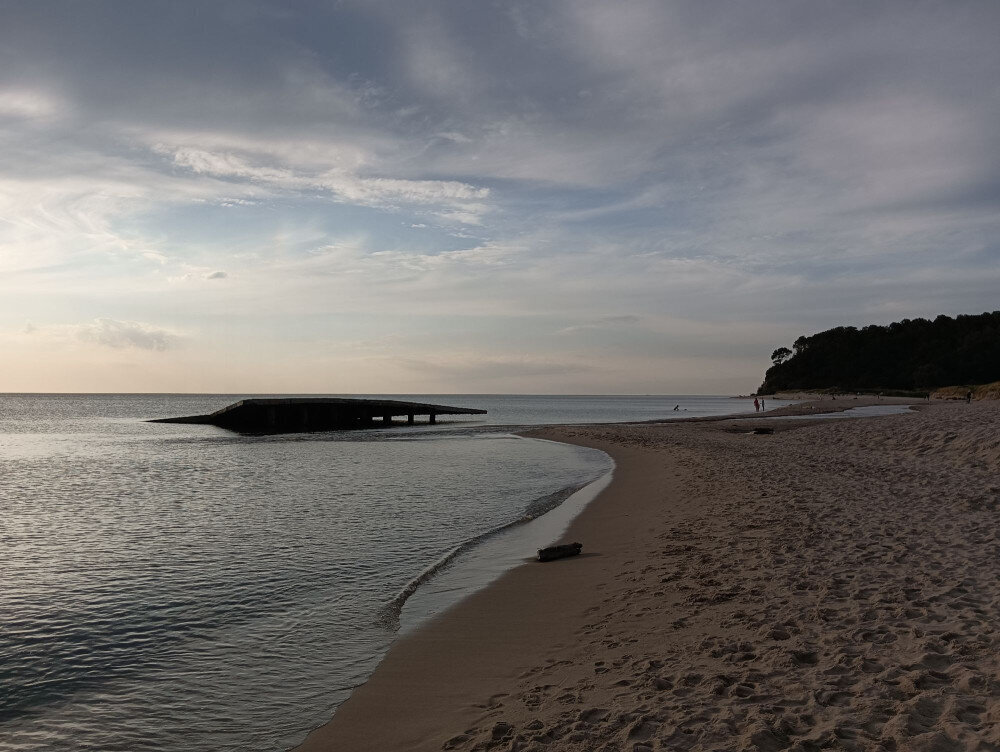 Мы раньше часто приезжали в Янтарный, он мне нравится тем, что там не так много народу, как в других курортных городах, но...совсем недавно я узнала одну чудовищную новость! Вот этот пляж сделан на месте массовой гибели евреев в ВОВ, а в 25 метрах от него стоит кафешка, из которой по вечерам орёт музыка и народ танцует на костях! Именно на этом месте мы не останавливаемся, всегда проходим метров 100 вперёд. Да и пляж там не оборудованный от слова совсем, а нам это нравится! Меньше народу, больше кислороду.