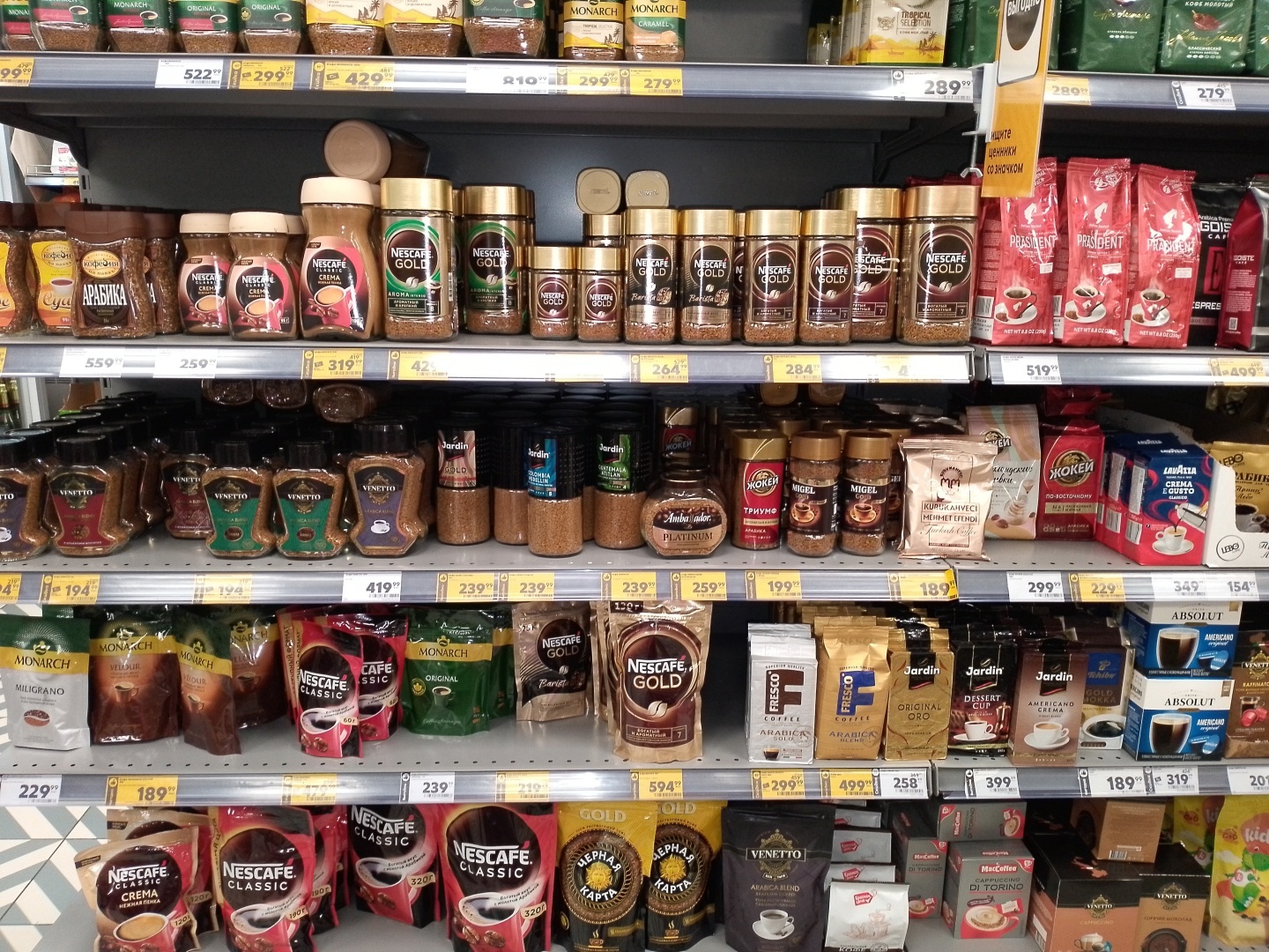 Неплохой выбор кофе, тут тоже много чего по хорошим скидкам.