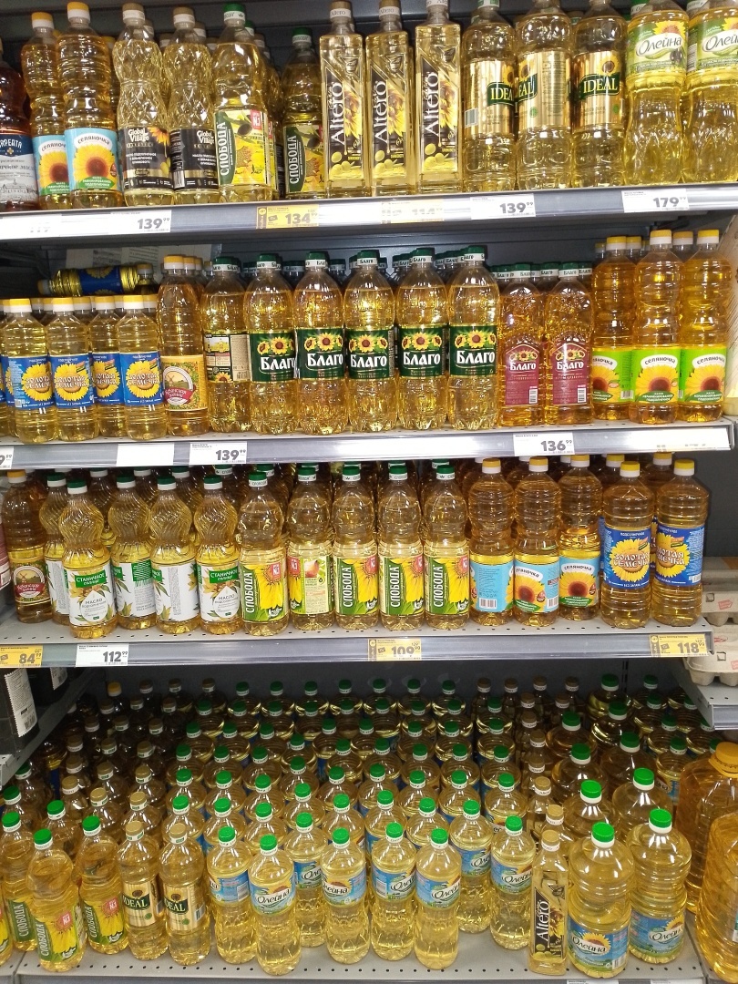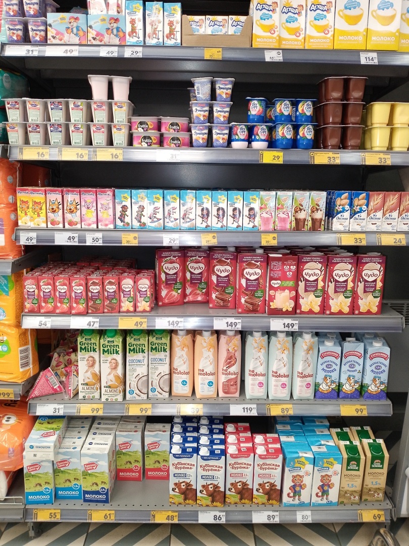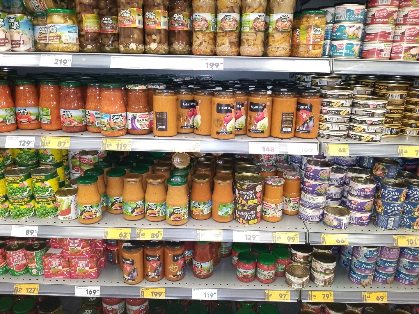 Полки буквально ломятся от различных товаров. Чего там только нет!