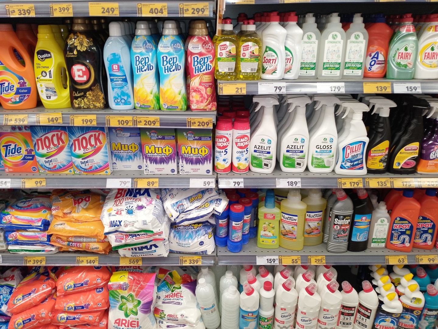 Выбор бытовой химии тоже хороший. На многие товары также скидки, акции.