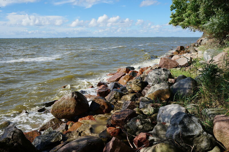 Через залив можно разглядеть Балтийск. Если проплыть по воде, то это всего километров 10.