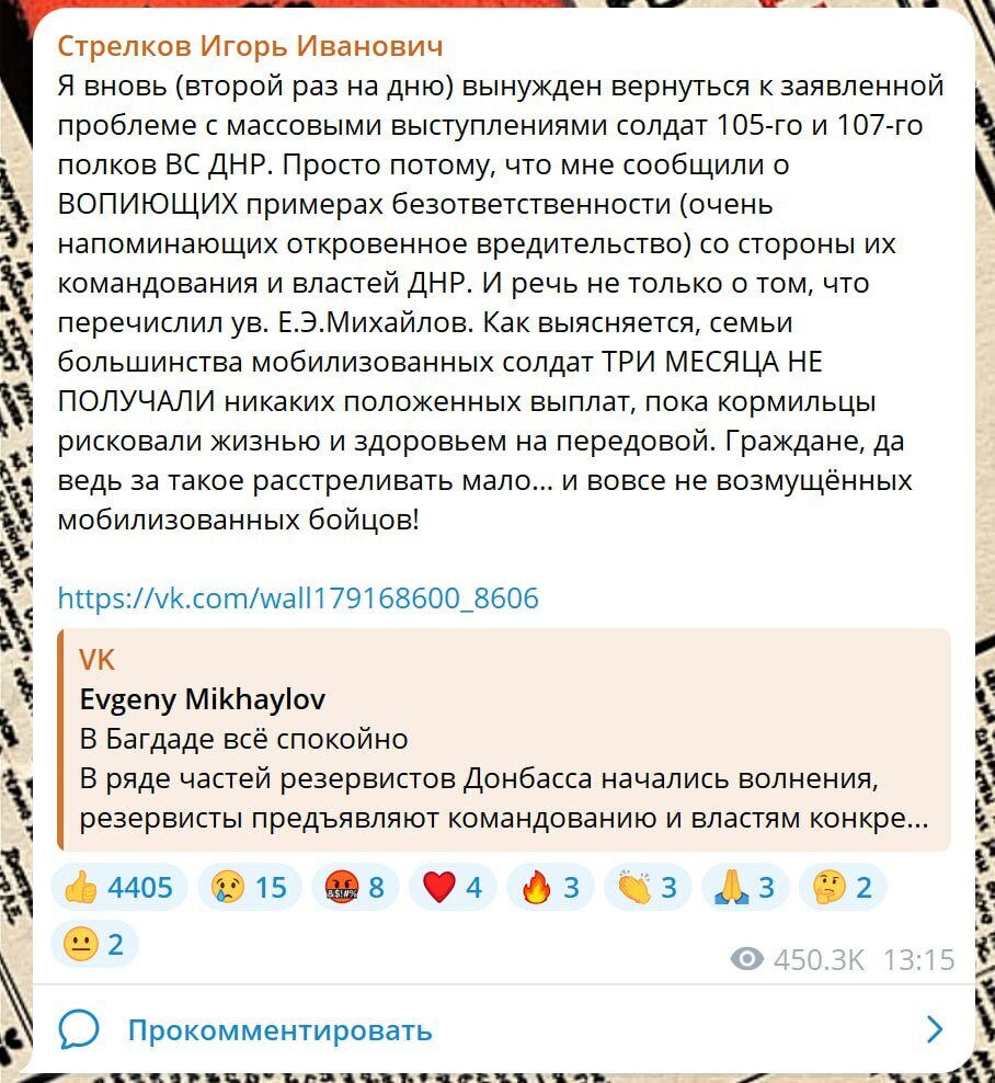 А ещё раньше он выпустил книгу на эту тему и не один он, ещё какой-то участник со стороны России, не помню ФИО, и книга продавалась, может сейчас изъяли. Не сторонник Гиркина, но он "политический", критик власти неутомимый, была подписана на его телеграм-канал, только критик радикальный, за более жёсткие действия.