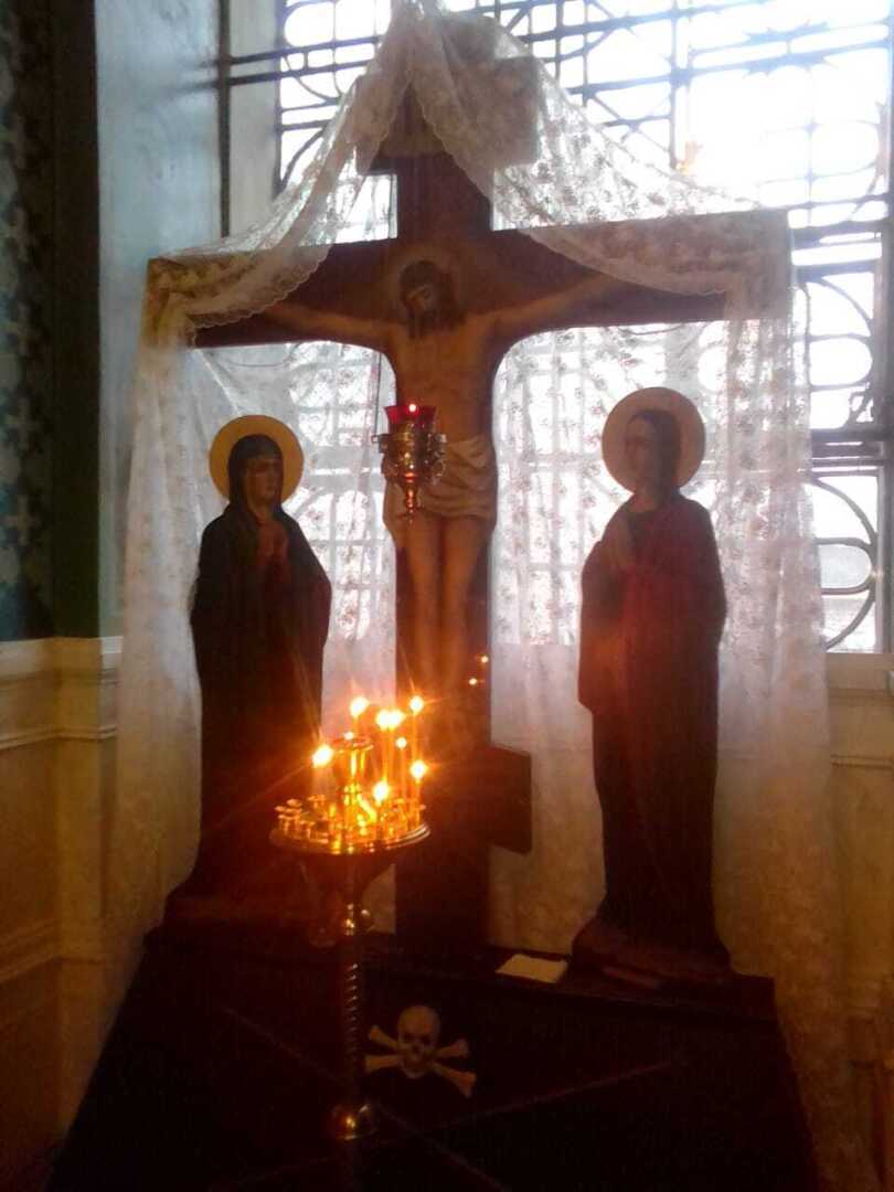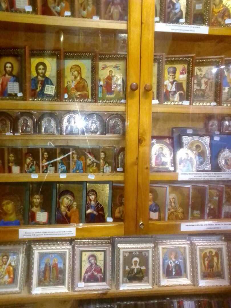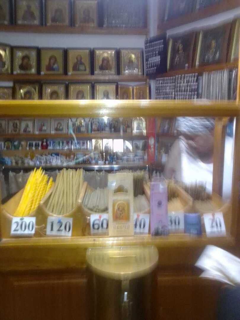 Как и везде, на входе в храм церковная лавка. Там прихожане могут купить абсолютно всё. Начиная от свечей, до крестиков и иконок.