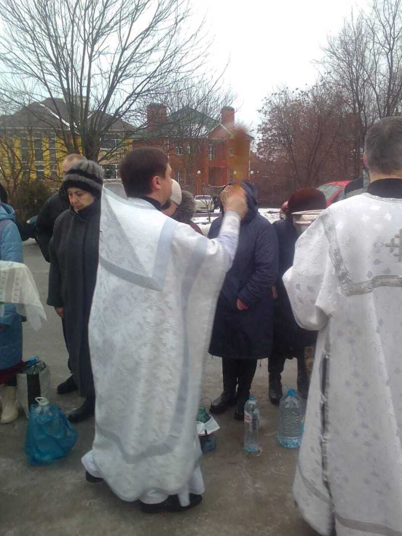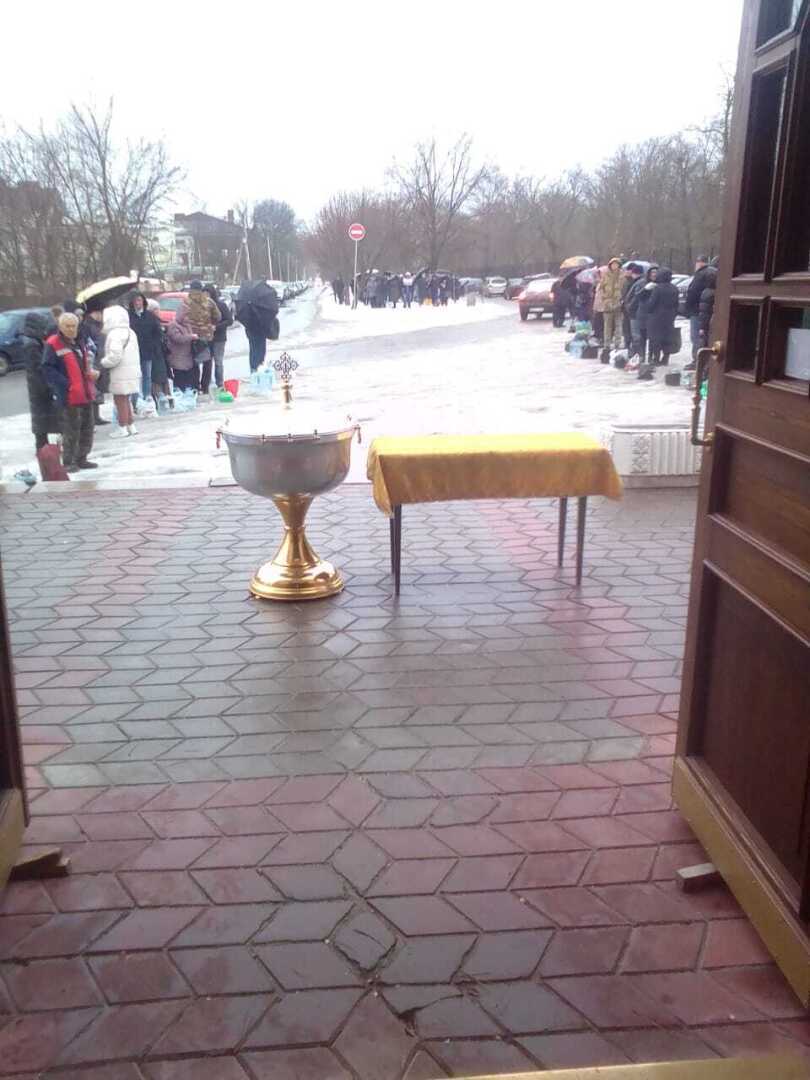 Прихожане стали выстраиваться на улице в два ряда. Я тоже стал вместе со всеми. Через время началось освещение воды, которую принесли прихожане.