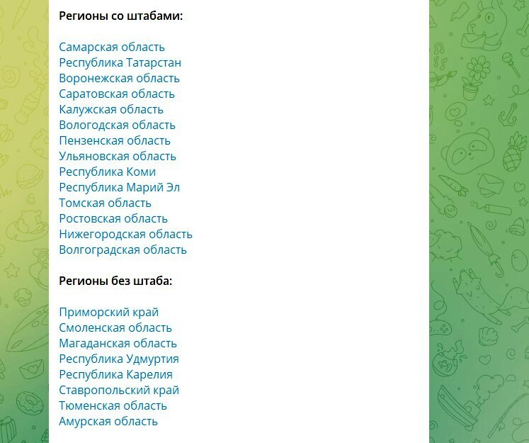 По сообщениям ТЛ-канала Бориса Надеждина не очень активны следующие регионы: