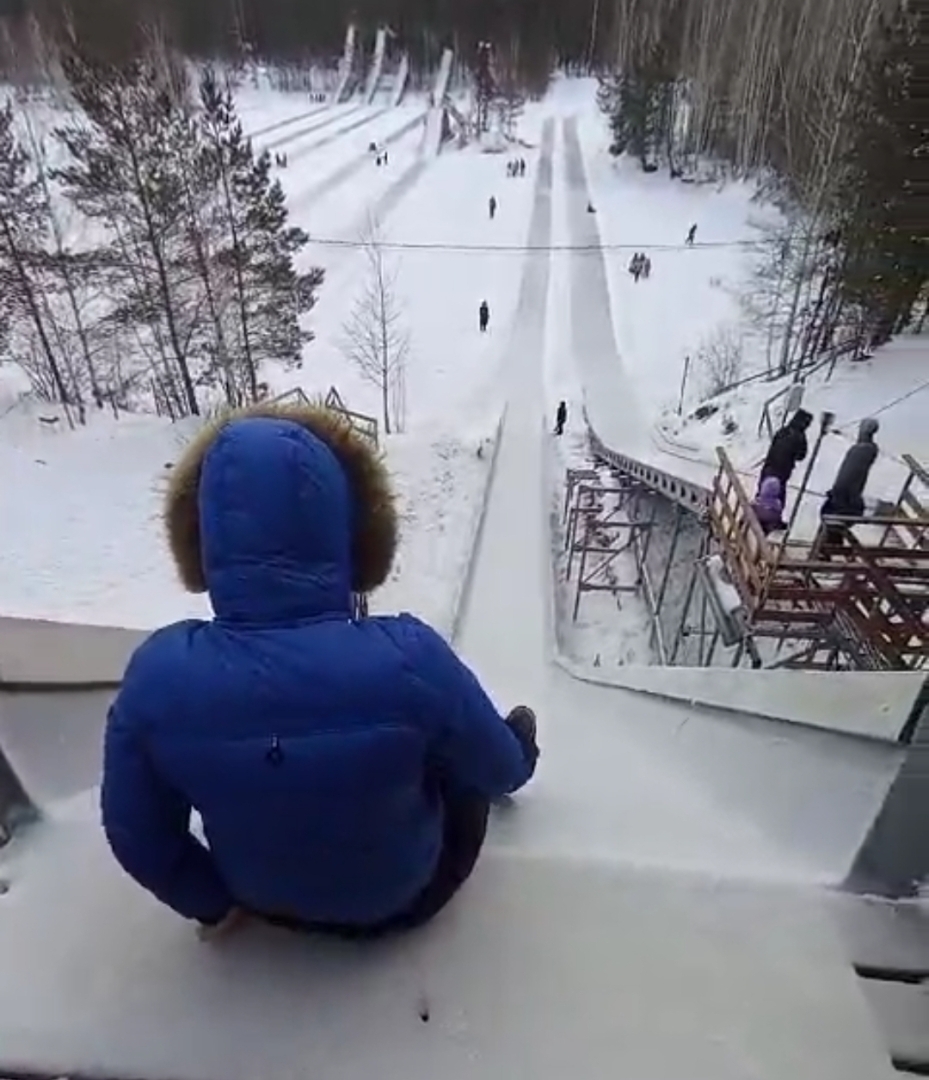 Пока мы катались на своей лесной горке в деревне, племяшка с Тюмени прислала свои катания с ледяной горы. У неё горка круче, наверное, я бы не решилась с такой скатиться. Хотя, если за компанию...