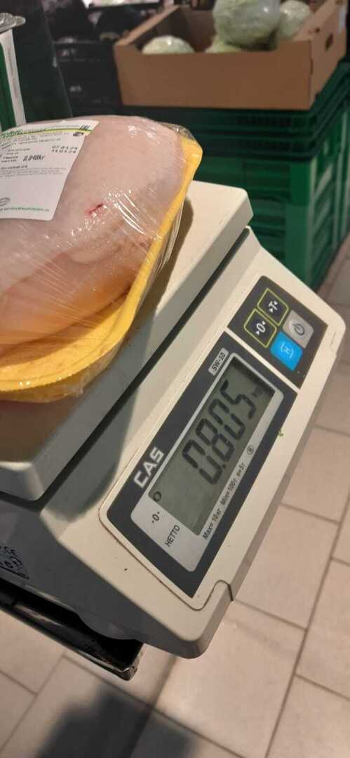В результате взвешивания на контрольных весах оказалось, что лоток с куриной грудкой, на котором был указан вес в 989 грамм, весил... (БАРАБАННАЯ ДРОБЬ!!!) на 279 гр (!) меньше положенного... Представляете, какая наглость?! Сколько переплатит покупатель? Мало того что дороже, так ещё и недовесили!