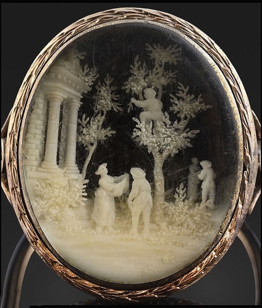 Золотое кольцо, подаренное молодым Наполеоном Бонапартом своей первой возлюбленной, было романтическим жестом, сделанным застенчивым подростком в отношении Каролины дю Коломбье, за которой он ухаживал, когда ему было 18 лет. Пара познакомилась в конце 1780-х годов, когда Наполеон находился во французской армии неподалеку от загородного поместья семьи девушки. Известно, что они вместе собирали вишни в саду и совершали романтические прогулки. Вскоре после одного из таких свиданий, наполенный Наполеон подарил Каролине, старше его на восемь лет, золотое кольцо с резной сценой из слоновой кости, изображающей людей, собирающих вишни. Кольцо было настоящим произведением искусства, символизирующим любовь и преданность. Своим прекрасным дизайном оно украшало палец Каролины, напоминая ей о взаимном чувстве, которое они разделяли. Как же красиво выглядело это кольцо! 💍❣️