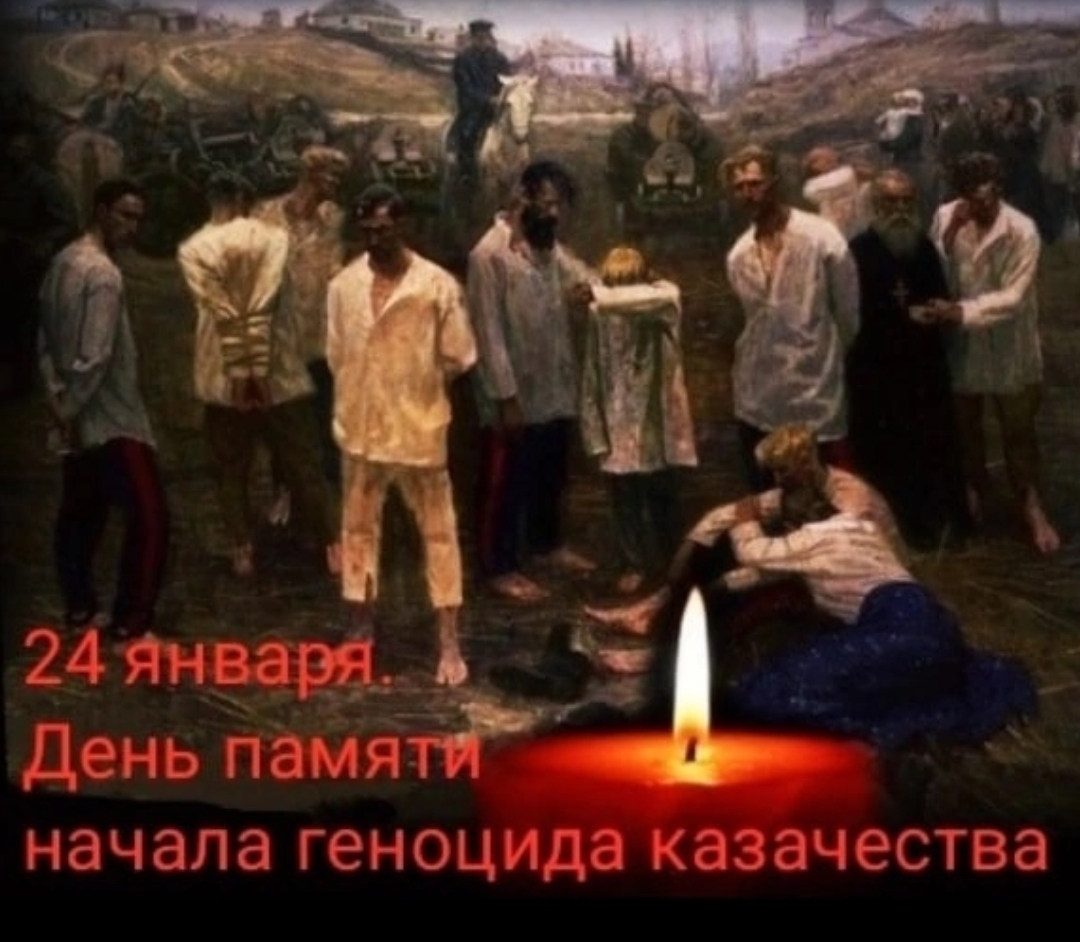 24 января - День памяти жертв геноцида казаков. От песни "Русь погубили на радость жидам" в исполнении Андрея Никольского щемит сердце и мурашки идут по коже, ибо в этой песне показана тяжелейшая горечь гражданской братоубийственной войны, в которой Русские убивали Русских...