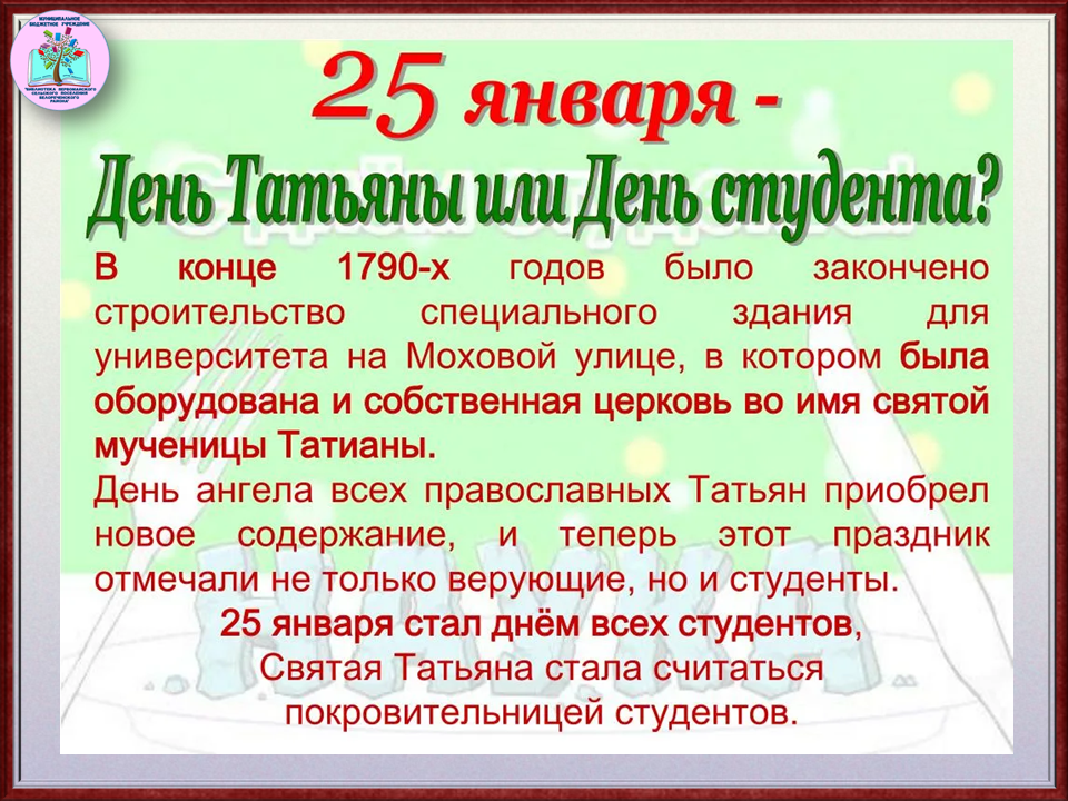 Танюшки, Танечки, Татьяны! Присоединяюсь к музыкальному поздравлению автора в ваш, в Татьянин день! Будьте здоровы и счастливы!