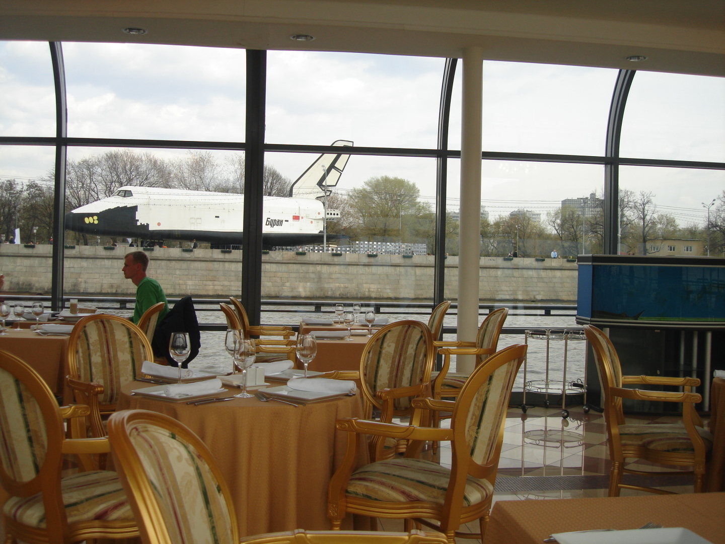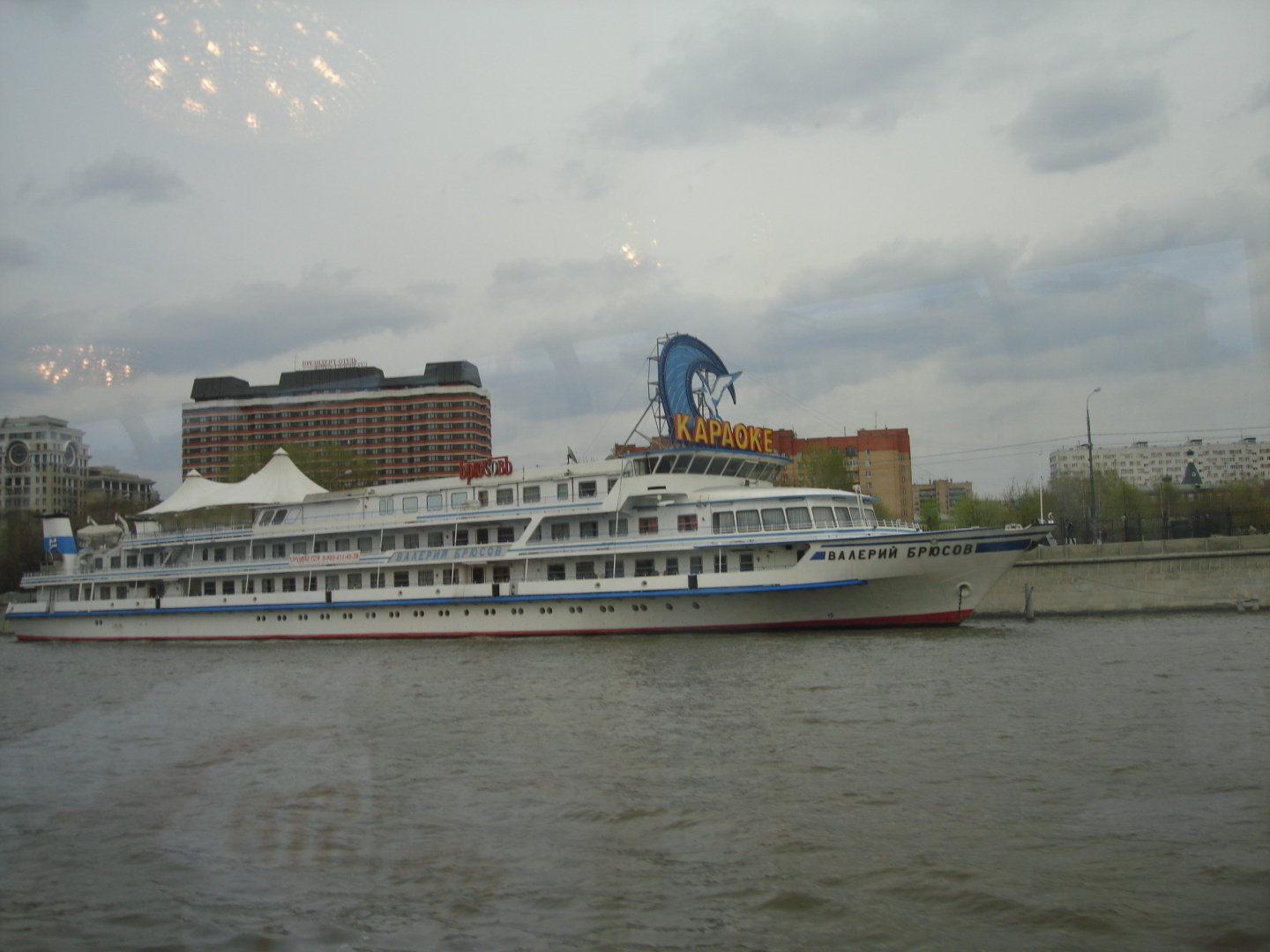 Рэдиссон пожалуй самый большой теплоход, который плавает по Москва-реке. Билеты на него дороже, чем на обычные речные трамвайчики. Внутри есть ресторан.