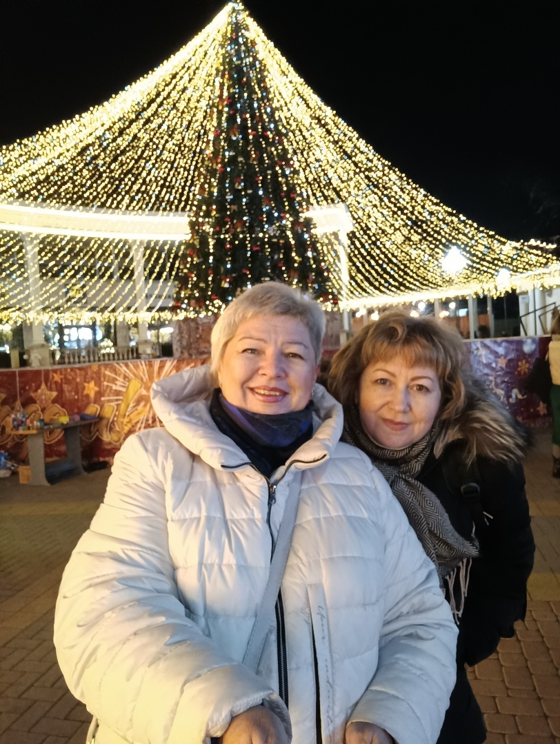 Утром, 1 января 2024 года, мы пошли гулять. Морозец, солнышко, кристально чистый воздух. Мы довольные и счастливые находили в этот день 15 тысяч шагов. У городской елки проходили конкурсы, играла музыка, повыходили уличные музыканты.
