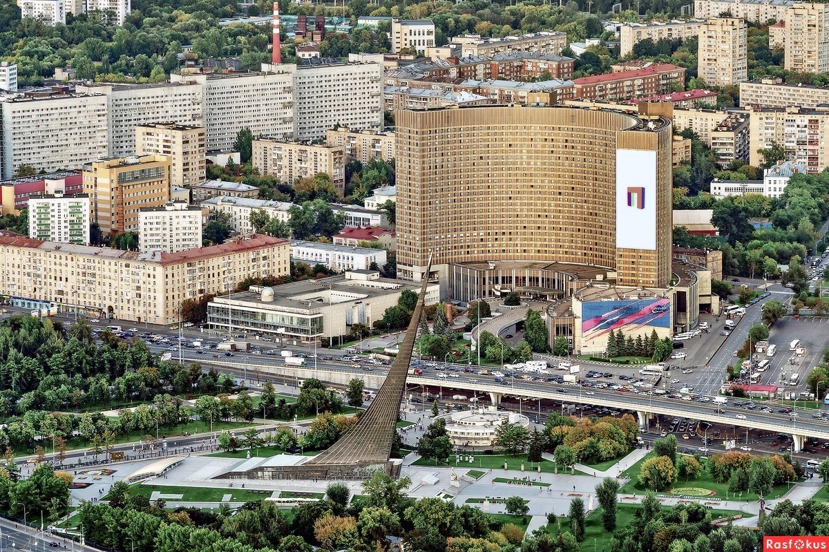 Если вы добирались до ВДНХ на метро, то прямо на выходе, практически напротив, стоит эта гостиница. Сложно не заметить и не обратить внимание на это здание. Из её окон ВДНХ, как на ладони.