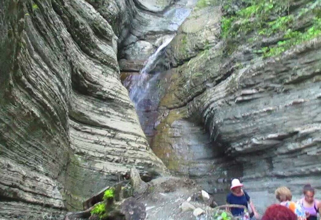 Расскажу немного о водопаде Псыдах. Его название переводится как "красивая вода". Псыдах имеет три яруса. Слоистый каменный мешок водопада сложен из известняковых пород.