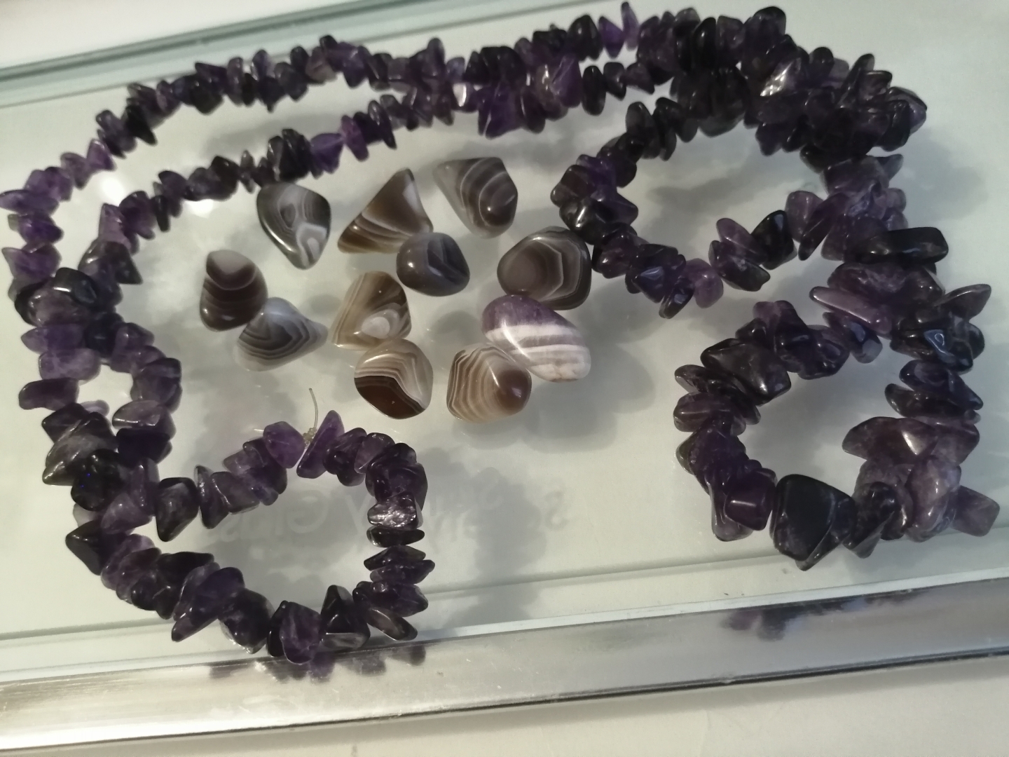 У меня много аметиста. Две очень длинный нити. Буквально, 150 сантиметров каждая. Муж любил длинные бусы на моей шее. Но аметист с Урала сильно проигрывает бразильским камням. Я рада, что у меня появился и такой камень. Тоже прислала подруга.