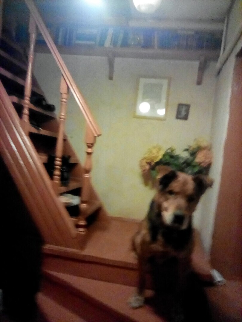 Так вот Шиша это, когда её посадили на цепь из-за работника во дворе, успела содрать всю облицовку дома и подкопать розовый куст. На неё рявкнули, а она подскочила на будку и по сторонам смотрит: кто? Кто-кто-кто сие безобразие учинил? Ща разберусь и искусаю