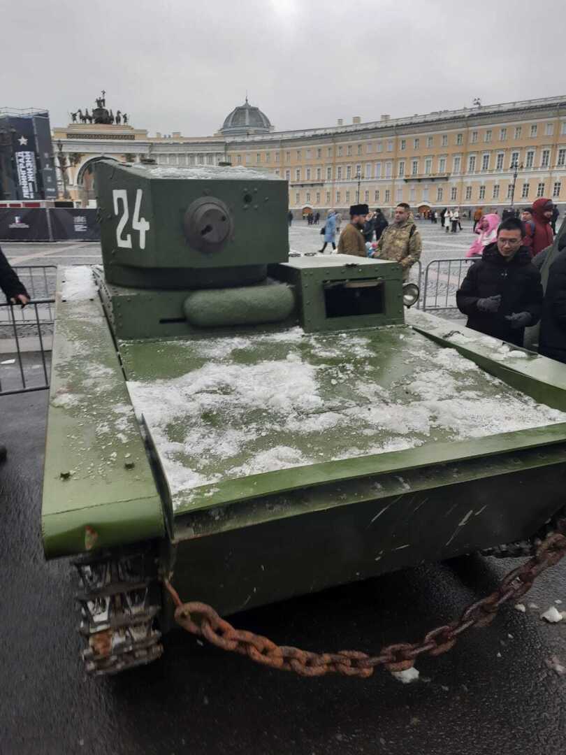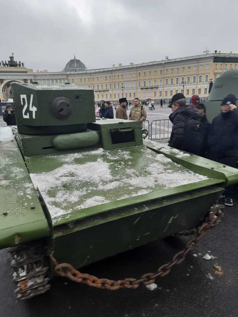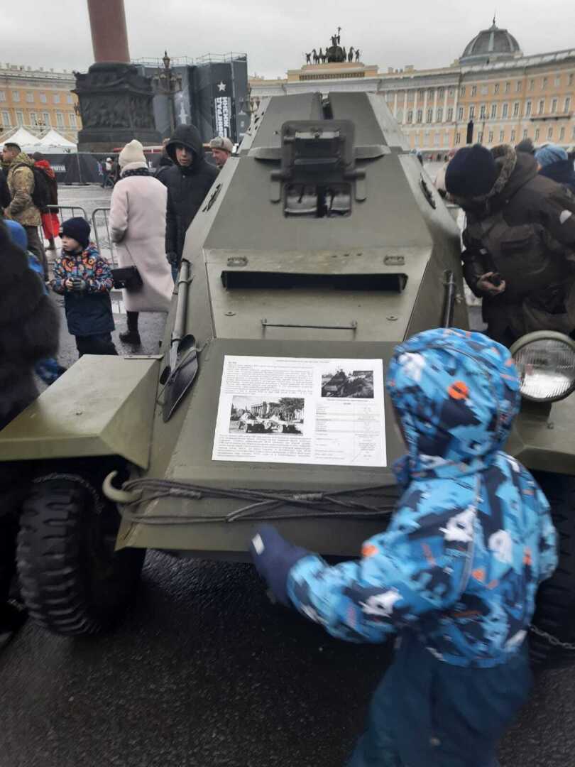 На праздники я редко езжу, но этот я пропустить не могла. «День снятия блокады Ленинграда». Кто-то пел, кто-то танцевал. Кстати, там были и ракеты, и старинные машины, тоже интересно было посмотреть. В сам Эрмитаж мы не пошли.