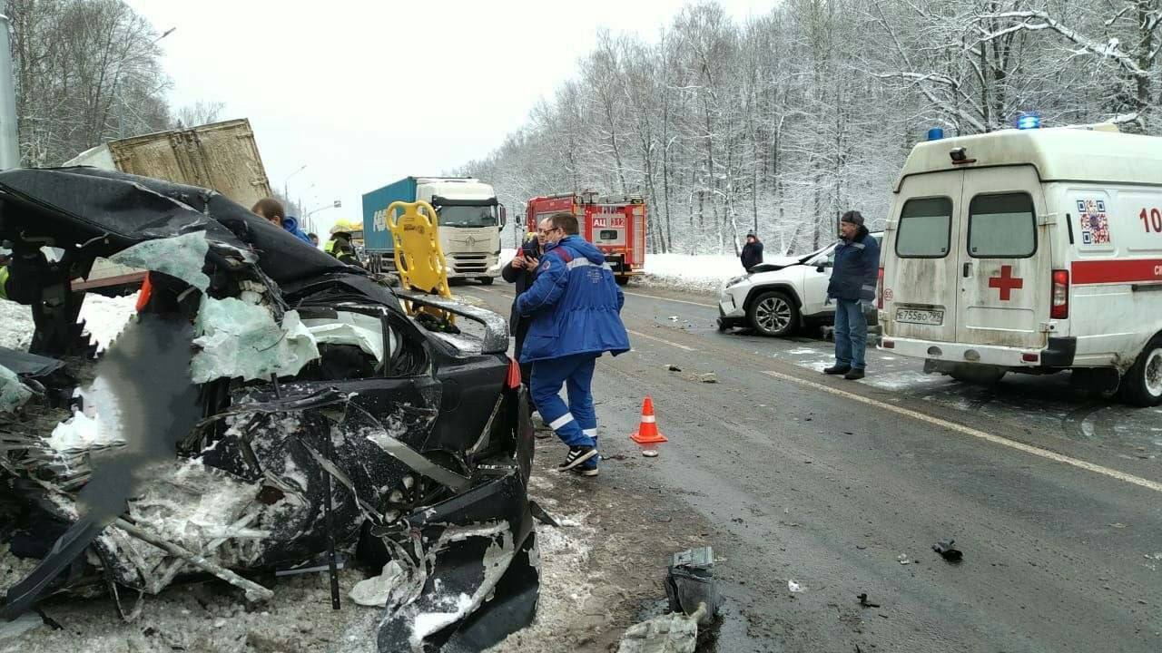 Грузовик вылетел на встречку и столкнулся с автомобилями Mitsubishi и Toyota. Водитель Mitsubishi погиб на месте, его пассажиры в тяжелом состоянии!