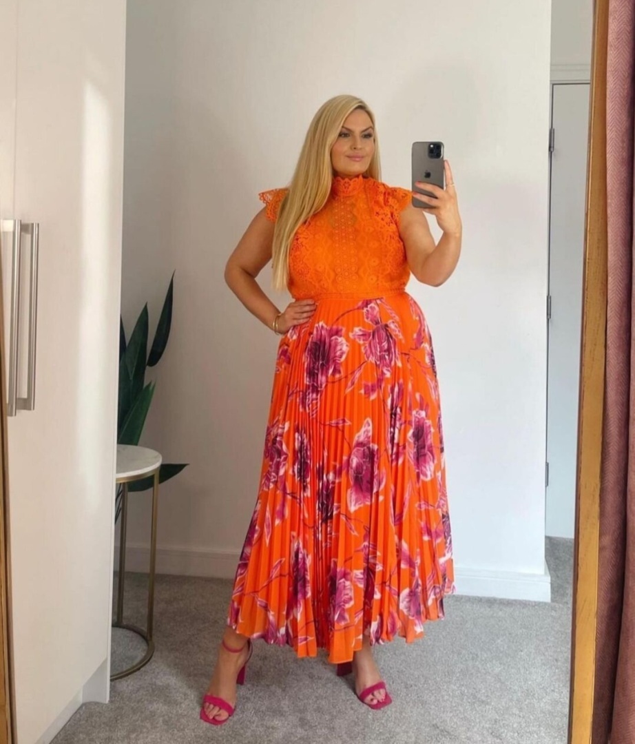 В начале мая уже хочется побаловать себя легкой и струящейся одеждой, которая не сковывает движения. И платье — первое, что приходит на ум. Трикотажные варианты с полным облеганием тела никуда не денутся, но женщинам плюс сайз лучше присмотреться к более свободным, но не менее элегантным силуэтам.Например, платье миди с акцентом на талии — то, что надо! Оно прячет проблемные ноги и живот, но зато открывает красивое декольте, изящные щиколотки и показывает, что у женщины есть талия. А для восприятия образа это важно.