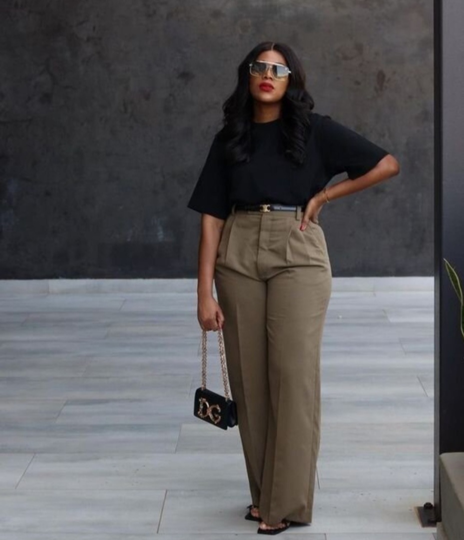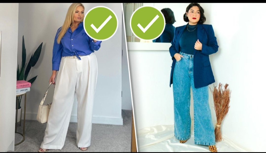 Пышкам лучше всего подходят широкие брюки прямого кроя или с легким расклешением от бедра. Такой фасон скрывает все лишние объемы и выравнивает ноги, делая формы более привлекательными.