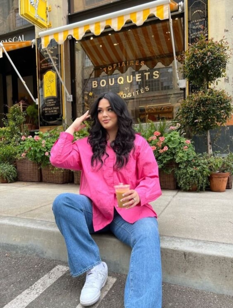Первое, на что стоит смотреть — это силуэт, который должен быть свободным, но не огромным. Потому что если взять гипер оверсайз, он расширит фигуру еще сильнее и после того, как заправишь рубашку в брюки, появятся некрасивые фалды и складки.