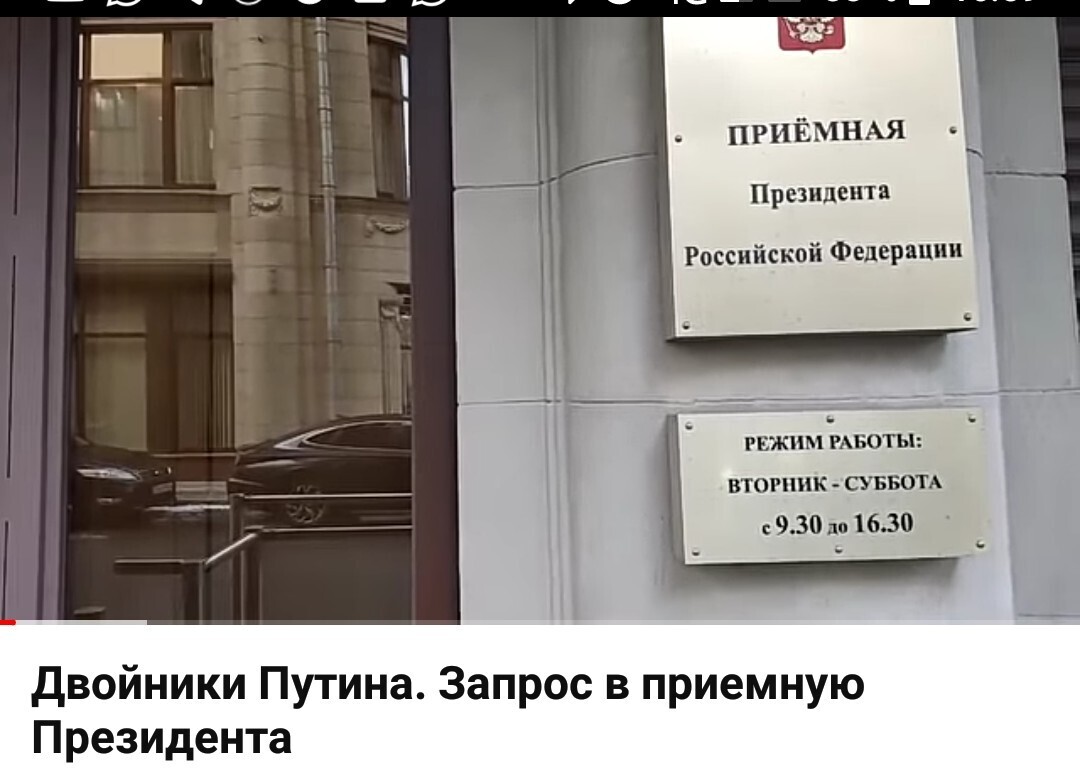 Очень интересный видео ролик. Женщины приехали в приёмную президента России Владимира Владимировича Путина и подали своё обращение. В обращении они пишут, что у них есть сомнения, что наш президент настоящий. Они ссылаются на мнения экспертов, фотографии, документы, мнения врачей и факты. Они подозревают , что у президента есть двойники. Обеспокоены они тем, что президент не показывает своих детей, чем они занимаются.