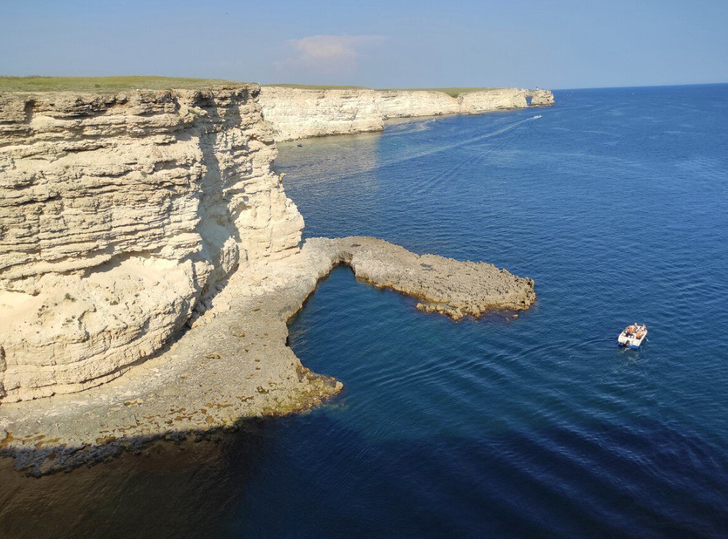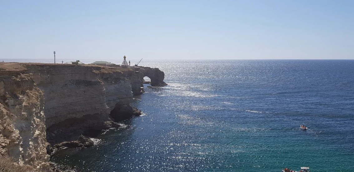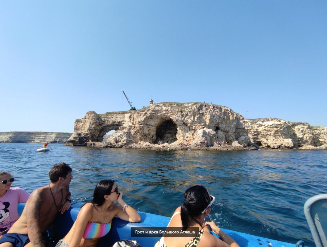 Доехав до маяка нам предложили экскурсию вдоль мыса Тарханкут на катере.