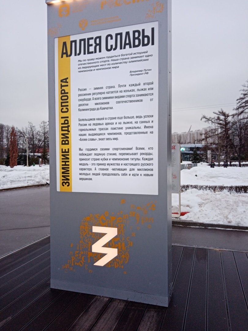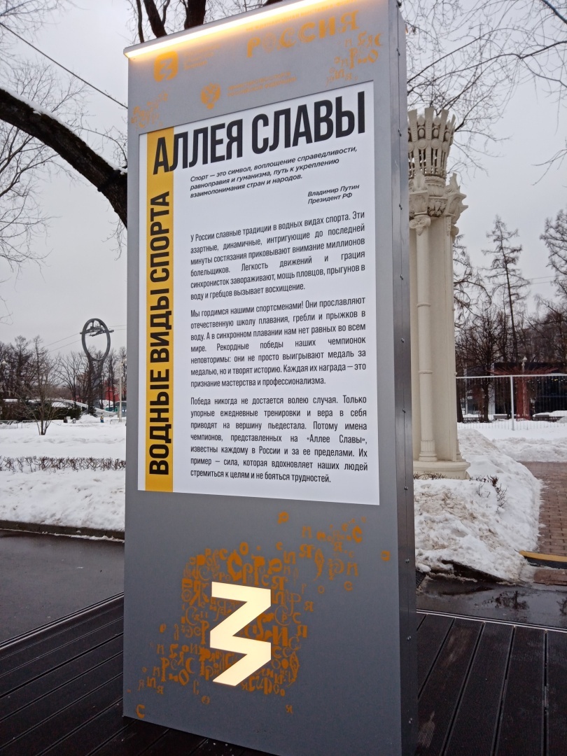 Слева от центральной дороги выставки "Аллея Славы" зимних и водных видов спорта России. Об этом хорошо описано во второй части моего путешествия на ВДНХ: