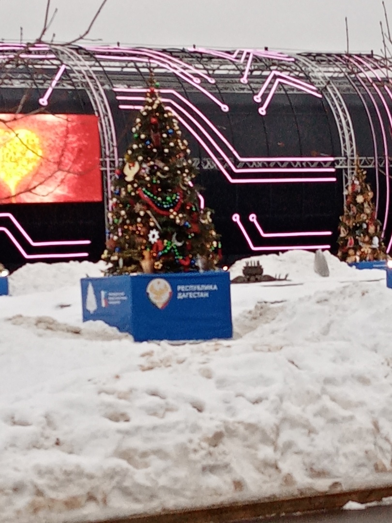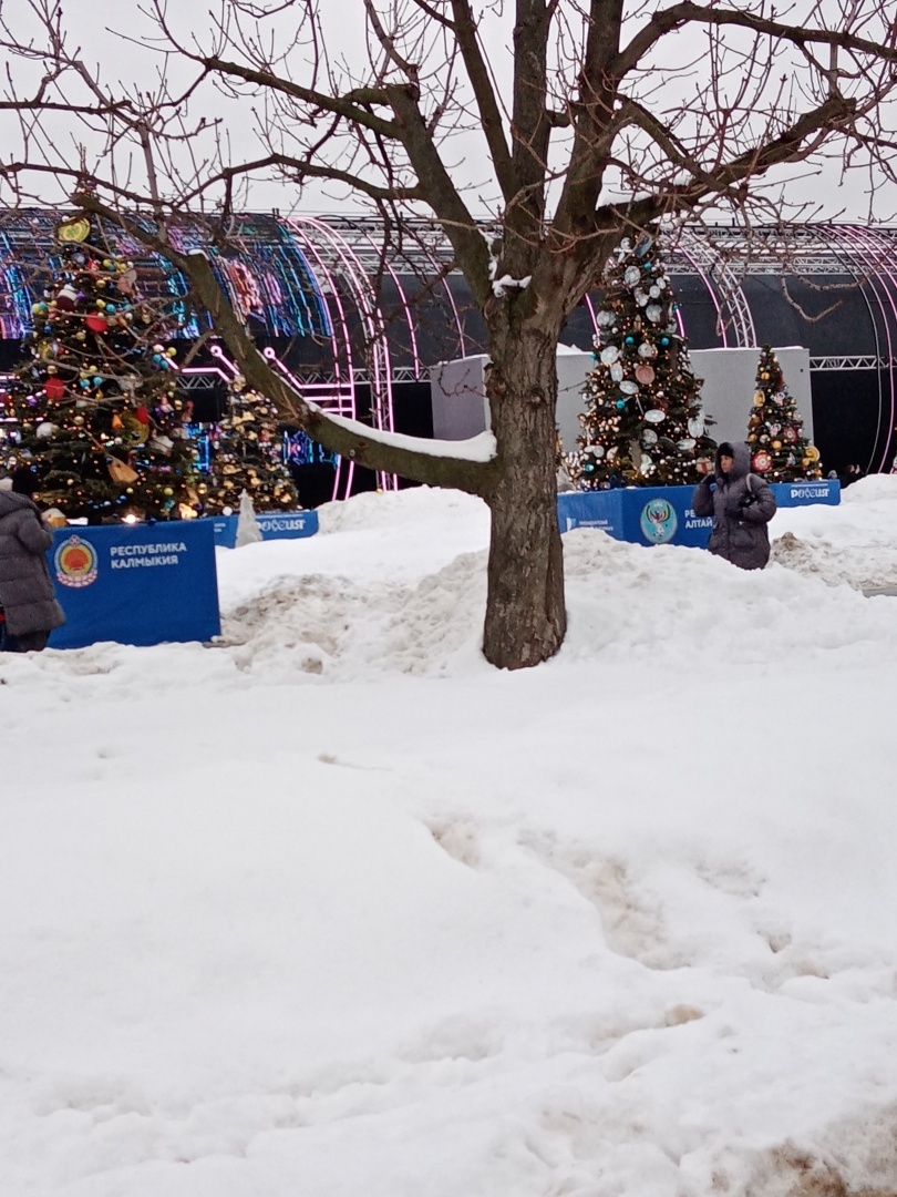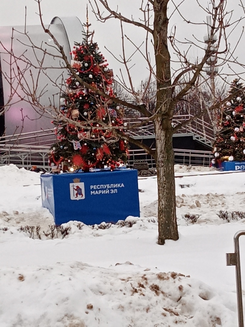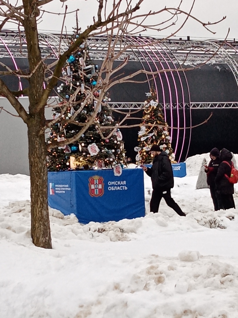 Вокруг самого тоннеля стоят наряженные новогодние ёлочки каждого из 89-и регионов нашей страны. Есть ёлка моей родной Омской области, я родилась в городе Омск.