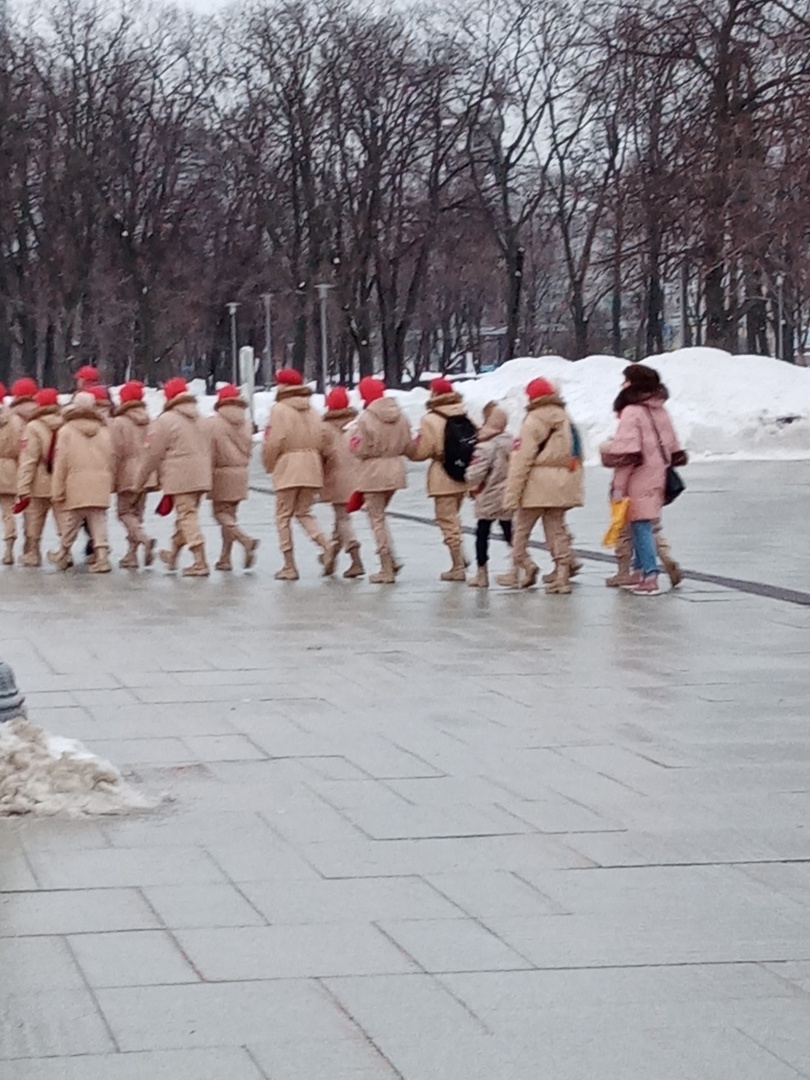 Вокруг много гостей - иностранцев и группы школьников разных общественных движений.