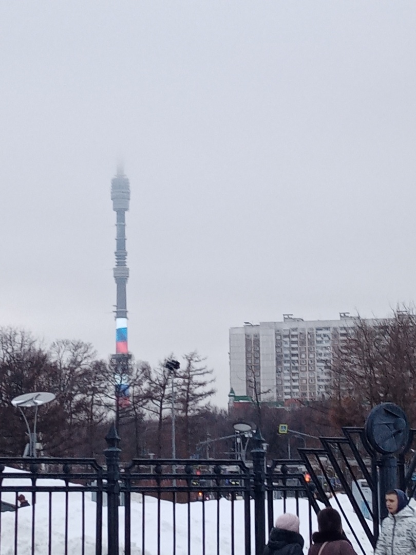 Справа от входа на ВДНХ видна Останкинская телебашня, её высота 540 метров и это первая башня по высоте в Европе.