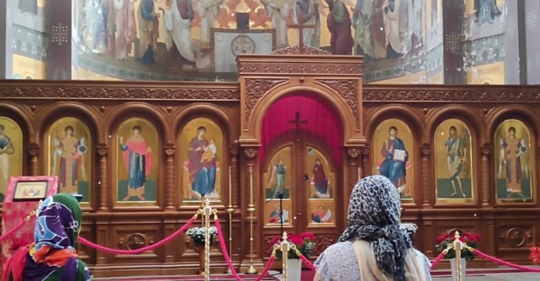 Особое внимание нас привлек великолепный иконостас, украшенный резными иконами и орнаментами. Каждая икона, будучи произведением искусства, раскрывает перед нами духовный мир религии, рассказывает свою историю и придаёт особую силу и мистический заряд всей обители.