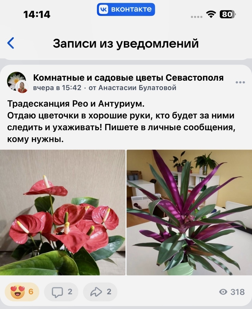 Все началось с размещения объявления некой Анастасией Булатовой, 1988 года рождения , в группе в контакте « Комнатные и садовые цветы Севастополя», мол , отдам даром.