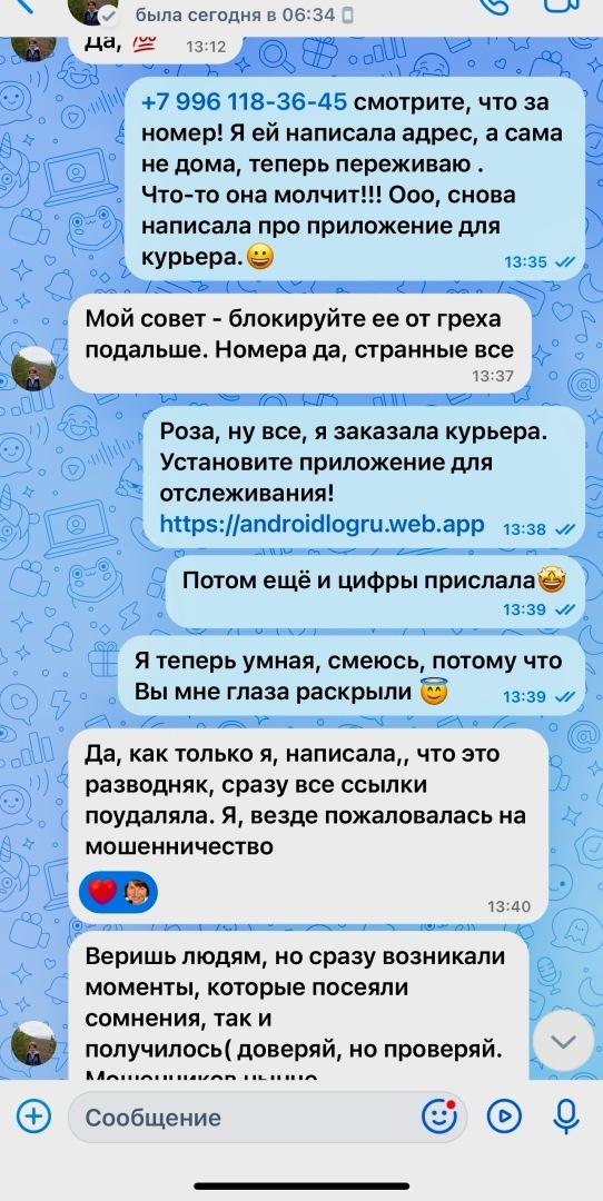 И тут завертелось , начиная переписываться с теми, кому параллельно предлагают загрузить приложение по отслеживанию курьера, затем ввести код.