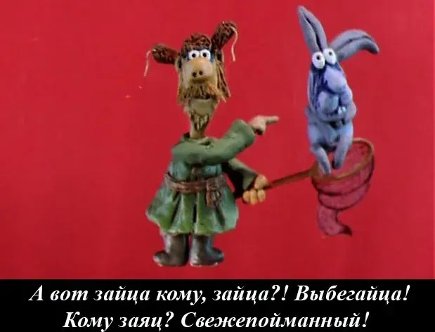 «А вот зайца кому, зайца—побегайца. ... Там дураков много, а вот зайцев, поди, мало!