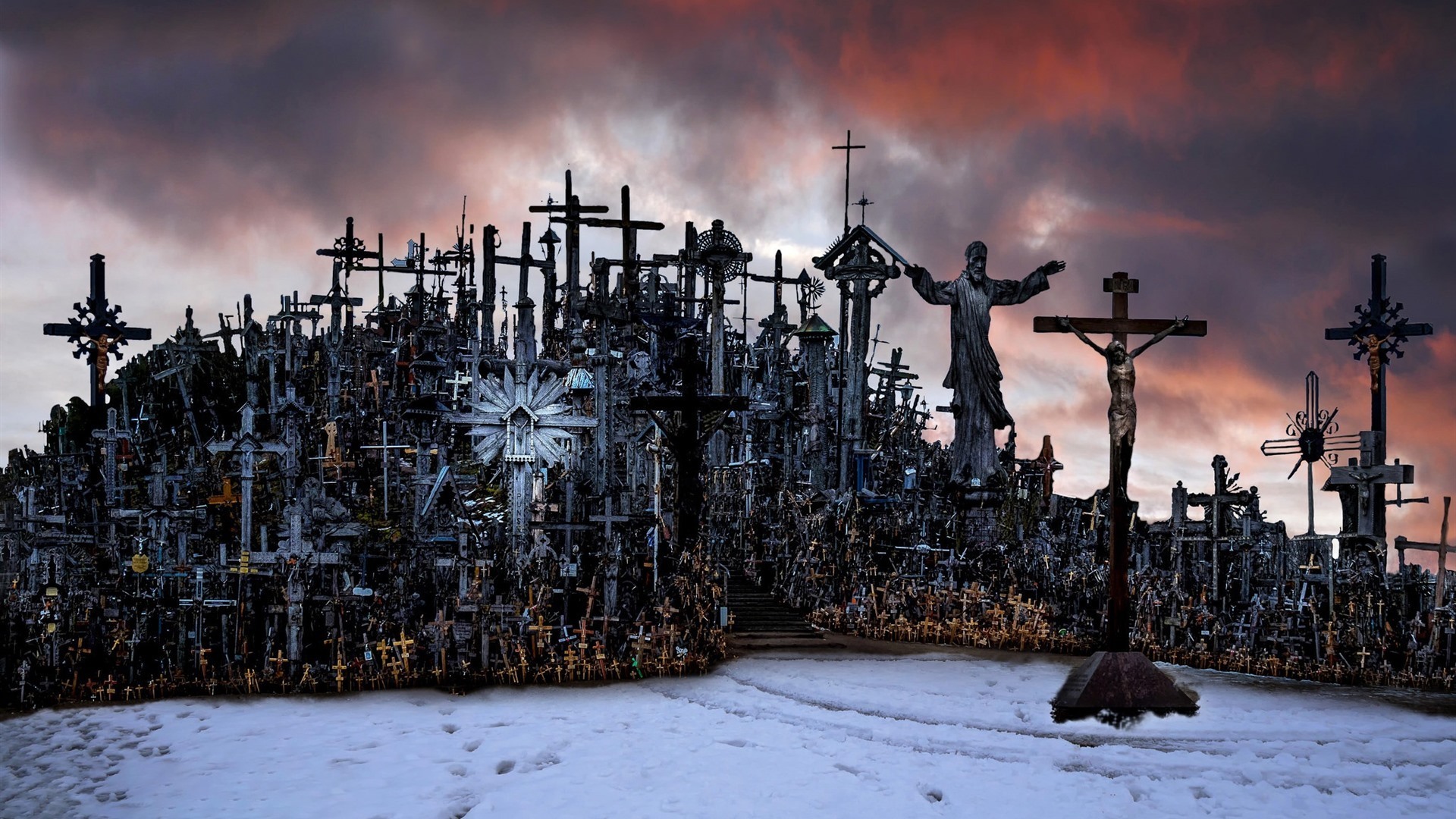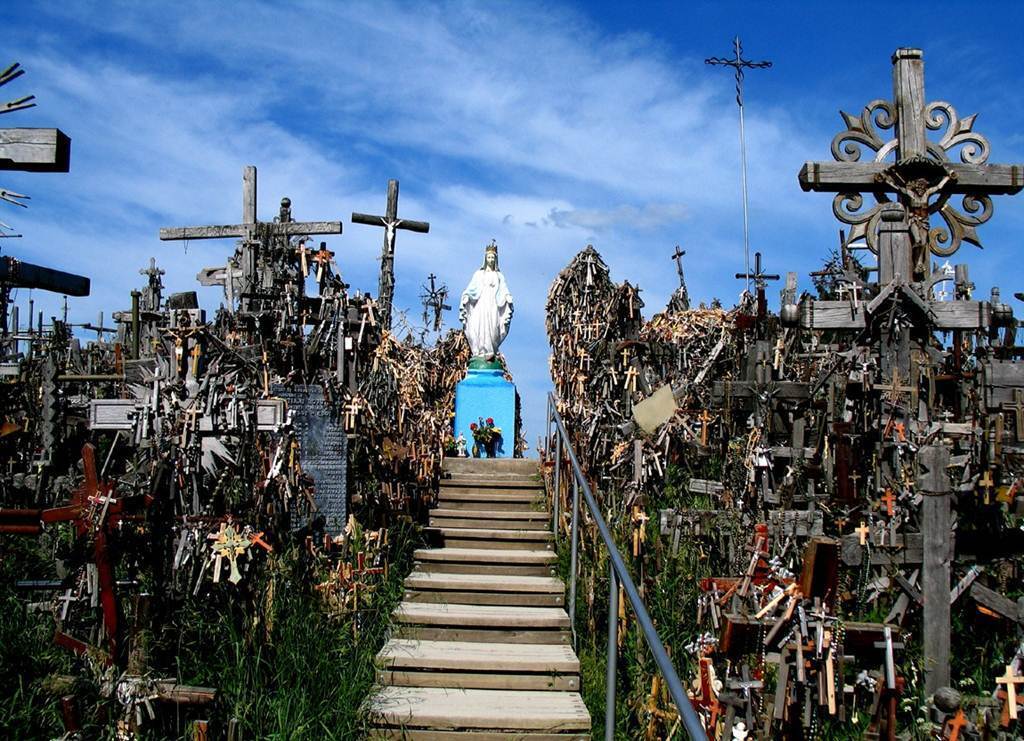 Гора Крестов на литовском звучит, как Kryžių kalnas (Крижью кальнас), поправьте, если неправильно произнесла. Откуда оно там возникло – не известно до сих пор. Но, приблизительно. в 14 веке там было Языческое капище. То есть, место, где располагались идолы языческих богов, таких как Перкунас и другие. Возможно, там располагался культ Солнца. В любом случае, сегодня место признано святыней и ежегодно туда приходят поломники из иудаизма, христианства, католичества. А также, это большой туристический объект, про это опишу позже.