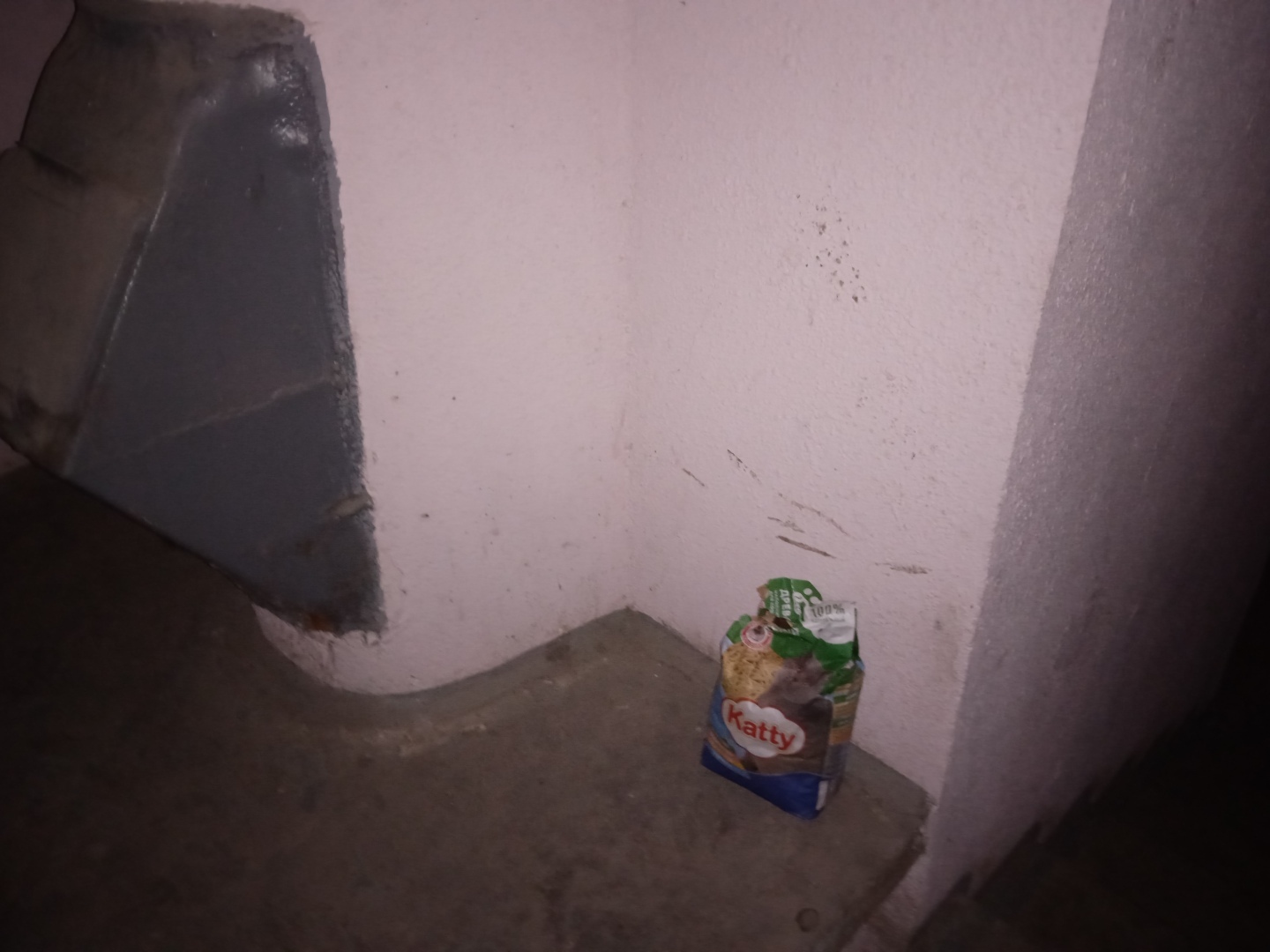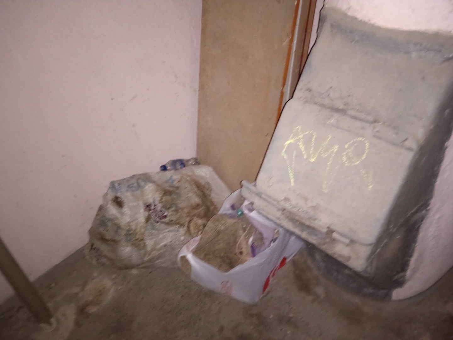 Даже древесный наполнитель от кошачьего туалета кто-то решил поставить между этажами у мусоропровода.