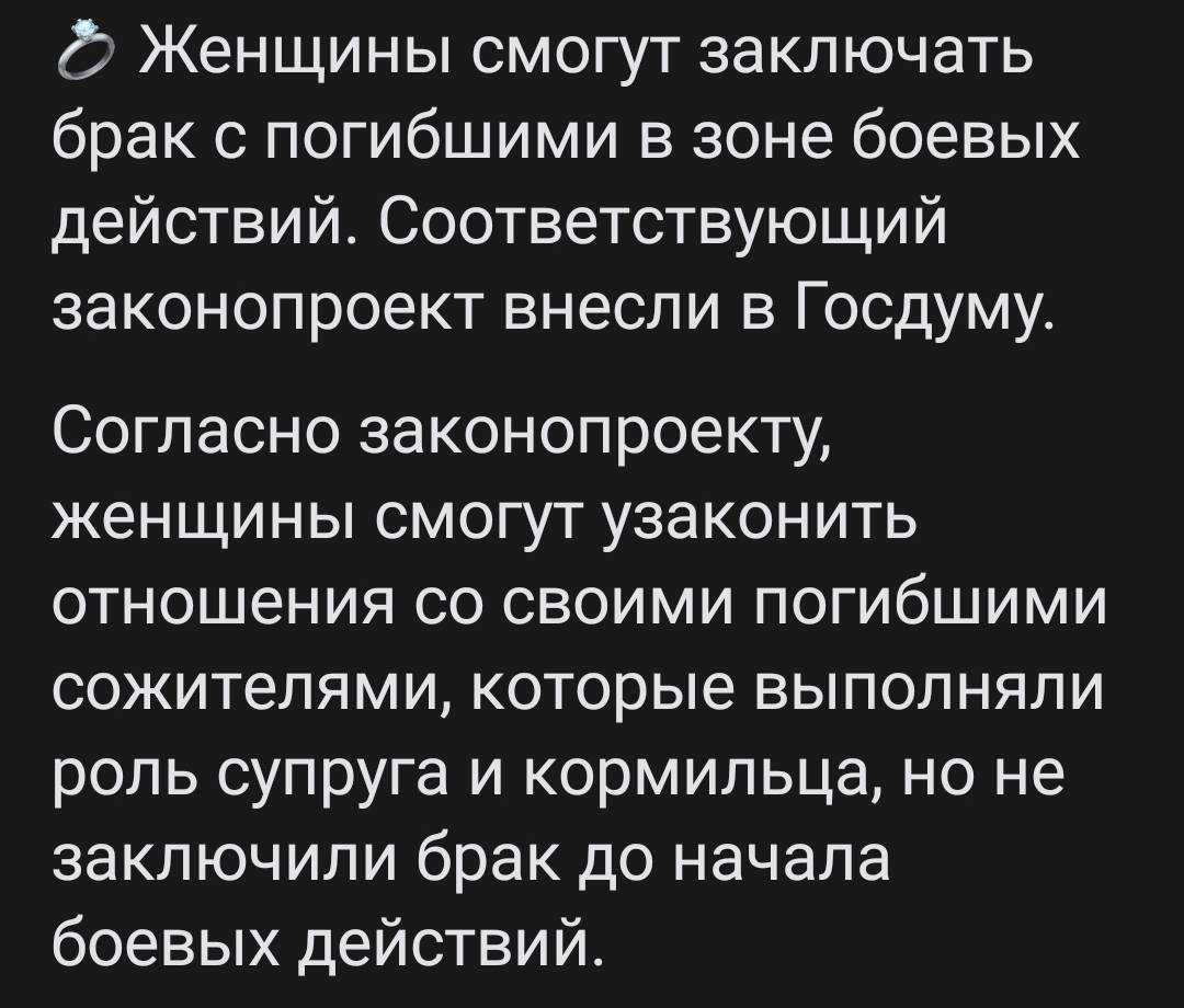 В России женщины смогут заключать брак с погибшими в зоне СВО