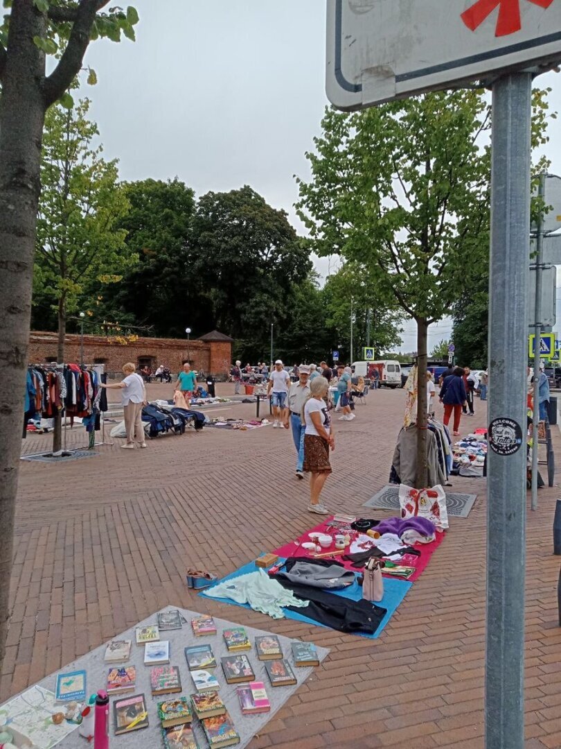 Блошиный ряд начинается от парка Юность и заканчивается у Башни Врангеля. Это длинная улица напротив верхнего озера. Чем же торгуют на калининградской барахолке? Самое удивительное, продавцов очень много, но и покупателей не меньше! Вот честно, никогда не понимала тех людей, которые из барахолки делают секон-хенд) сейчас уже не те времена, когда с рук покупают б/у одежду. Ладно ещё посуду советских времён, но не тряпки ведь, или книги.