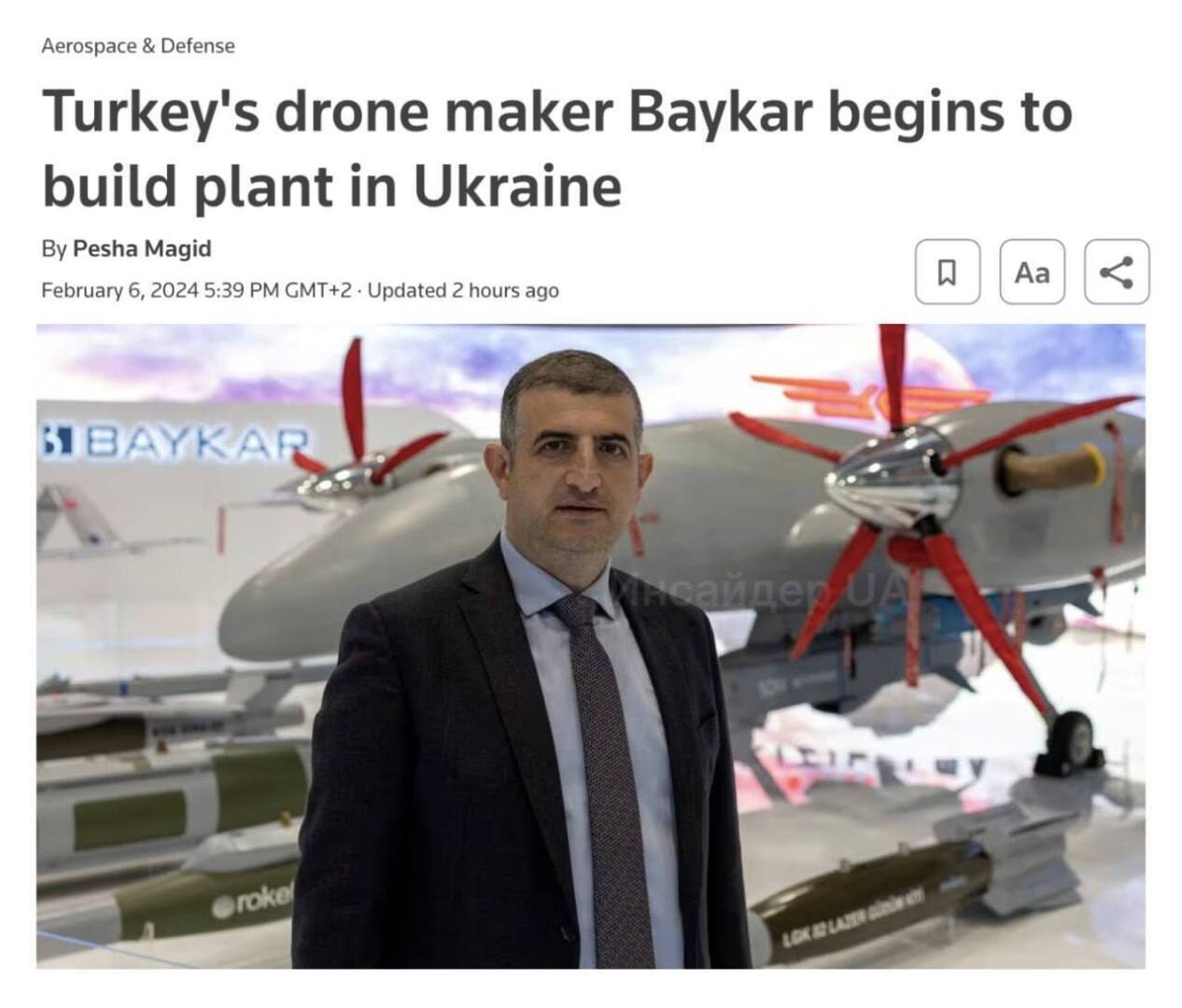 Турецкая компания Baykar начала строительство завода дронов под Киевом, — Reuters.