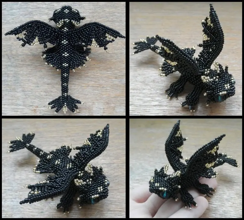 Такимже образом сделайте крылья, используя 10 рядов ндебеле и все мелкие бусины наспине. На схеме показан процесс изготовления, и, думаю, все достаточно понятно. Однако это лишь приблизительный вариант, и в процессе плетениявы всегда должны подбирать и корректировать количество бисера в зависимости от результата. Надеюсь, эти описания помогут вам связать что-то подобное.