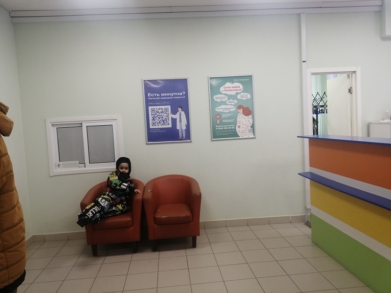 Я постеснялась делать снимки в кабинете. Всё таки малыш там на осмотре. Да и неизвестно, какая реакция будет у доктора. Хотя у нас доктор хороший.