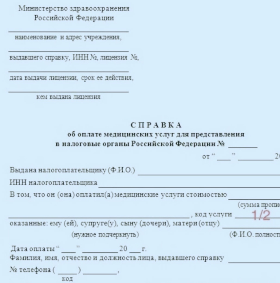 Образец справочки, которая потребуется для оформления налогового вычета в 2024 году, размещён ниже. Но на самом деле образец и не нужен; все медицинские организации, оказывающие платные услуги, знают, какие справки нужно выдавать для оформления налогового вычета на лечение в 2024 году. Последние годы всё больше людей оформляют налоговые вычеты на лечение, поэтому выдача справок уже поставлена на поток и не вызывает затруднений.