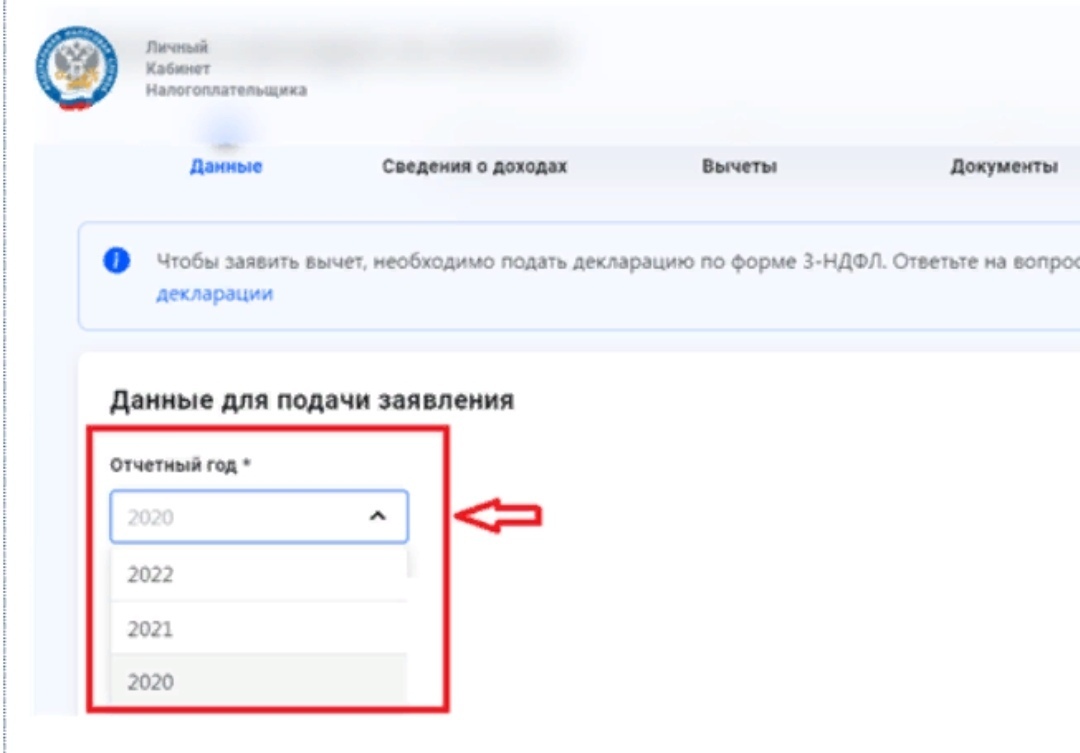 - выбрать год, за который желаете получить вычет (в 2024 году можно получить вычет за 2021–2023 гг.);
