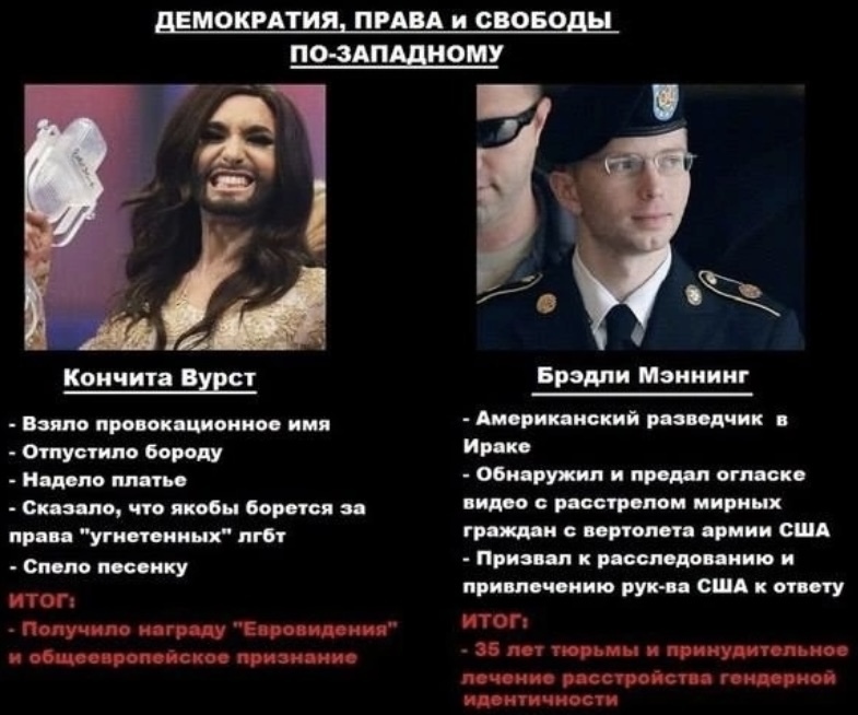 На данный момент Америка пытается стереть грань между женщиной и мужчиной, навязывая свои правила игры всему миру. Для них традиционный брак это большая проблема, которая не соответствует ее главным принципам - продвигать нетрадиционные отношения среди людей.