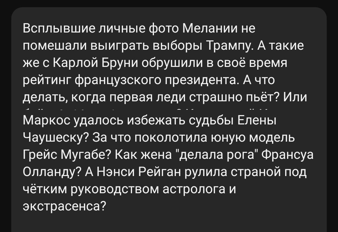 🤔Первые леди и их скелеты в шкафу | Мелания Трамп, Карла Бруни, Имельда Маркос, Елена Чаушеску... 👍