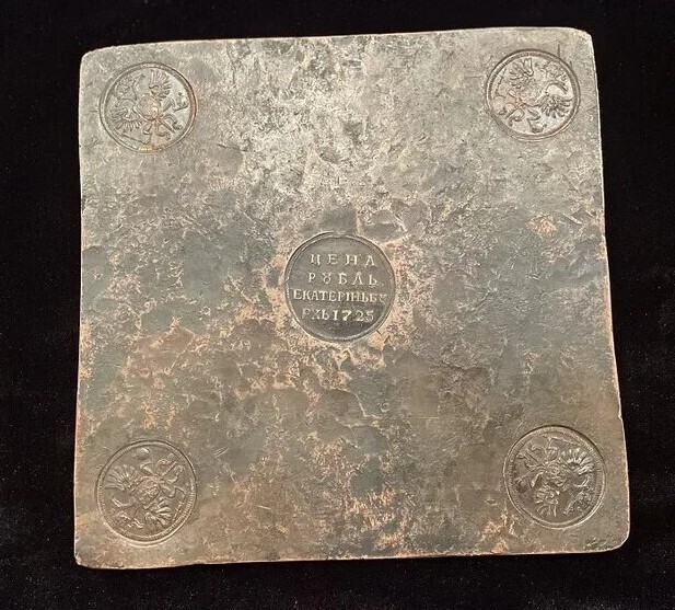 В 18 веке в Российской империи выпускались квадратные медные деньги. Самая маленькая весила 1.6кг, самая большая - 20кг. Из-за большого веса не удобно было пользоваться, перешли на маленькие монетки.