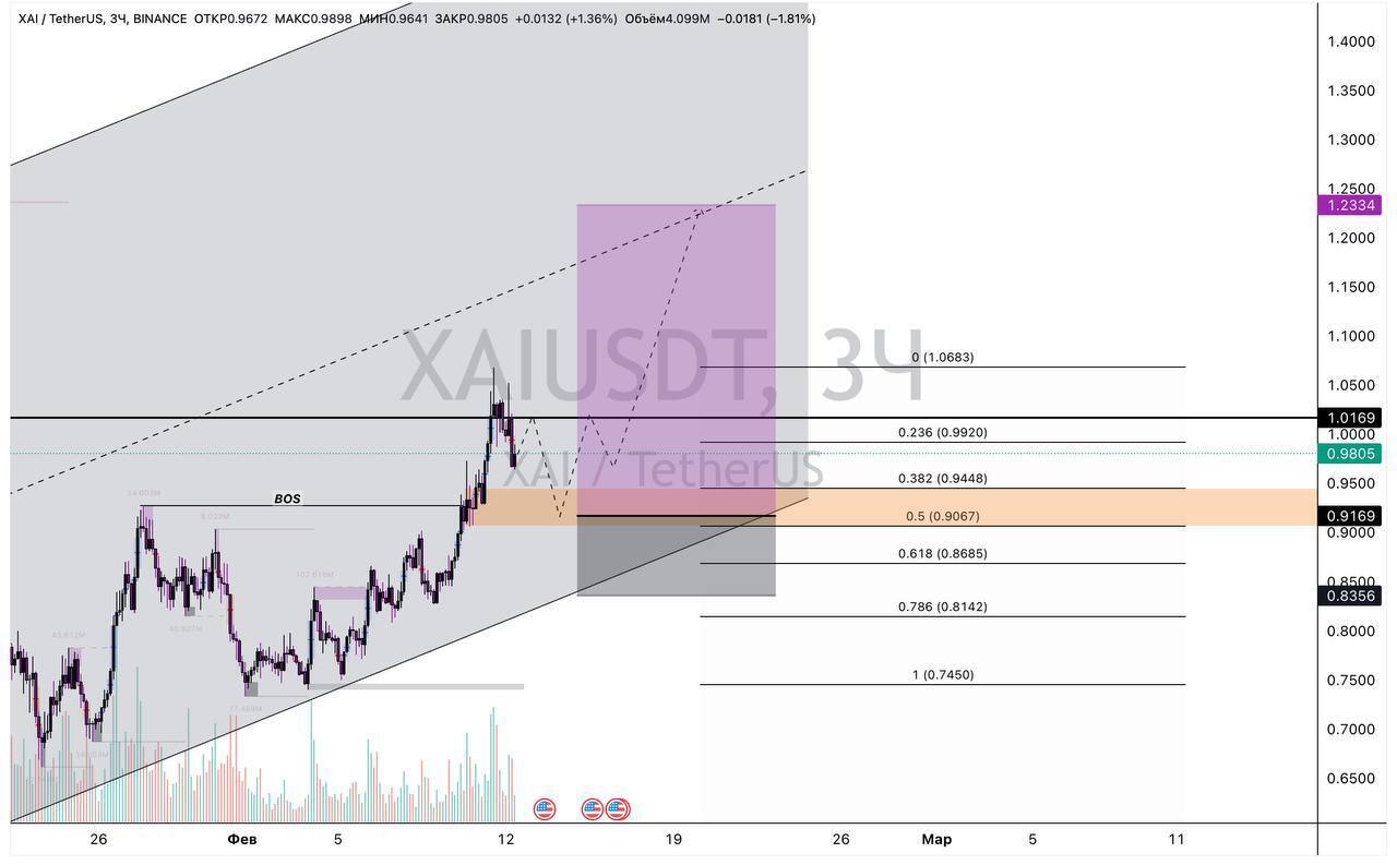 #XAI - на 1Д сформирована формация «двойного дна», есть хорошие обьемы в покупку и много не перекрытых зон вверху